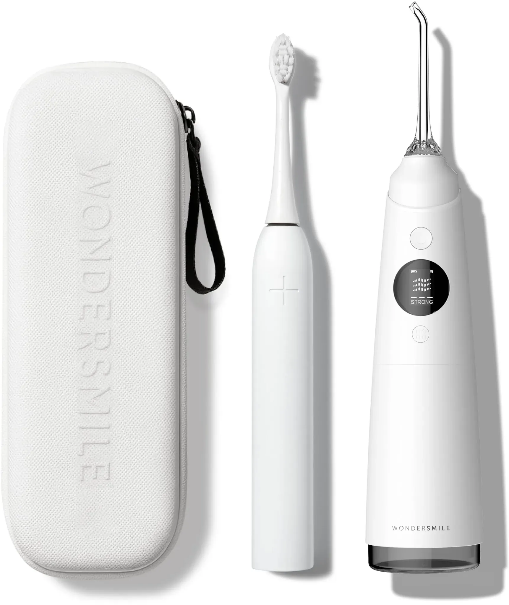 Kategorie: Elektrische Zahnbürsten - wondersmile - GTIN:4260756984092 - EFFIZIENNTE SMOOTHFLOW-TECHNOLOGIE - Entfernt Plaque & Essensreste zuverlässig. Der 280 ml Tank unserer Munddusche ermöglicht 60 Sek. Reinigung ohne Nachfüllen 360 DüSENROTATION & 5 PROGRAMME - Dank der 360 Düsenrotation können auch schwer erreichbare Stellen gründlich gereinigt werden. Teste 5 unterschiedliche Programme aus LANGE AKKULAUFZEIT & INTELLIGENTES DISPLAY: Der Power-Akku hält bis zu 30 Tage. Mit dem benutzerfreundlichen OLED-Display können Einstellungen und Akkustatus stets überwacht werden DURCH MARKTüBLICHE STUDIEN BESTäTIGT - 92% erzielten mit Munddusche & Schallzahnbürste bessere Ergebnisse als mit Zahnseide. 0% empfanden Schmerzen bei der Nutzung LIEFERUMFANG - 1x Waterflow Munddusche, 1x Düse, 1x Ladekabel, 1x Netzstecker, 1x Bedienungsanleitung - 69,99 Euro bei Amazon Marketplace Health & Personal Care - gefunden von billiger.de Dieses Bundle für 89,89 Euro bietet eine Wondersmile Schallzahnbürste PRO im "Travel Care Bundle" und ist ideal für Reisende. ![]() ![]() Wondersmile Schallzahnbürste PRO - Testsieger 2025 - Elektrische Zahnbürste im Set (Travel Care Bundle, All White Bundle)