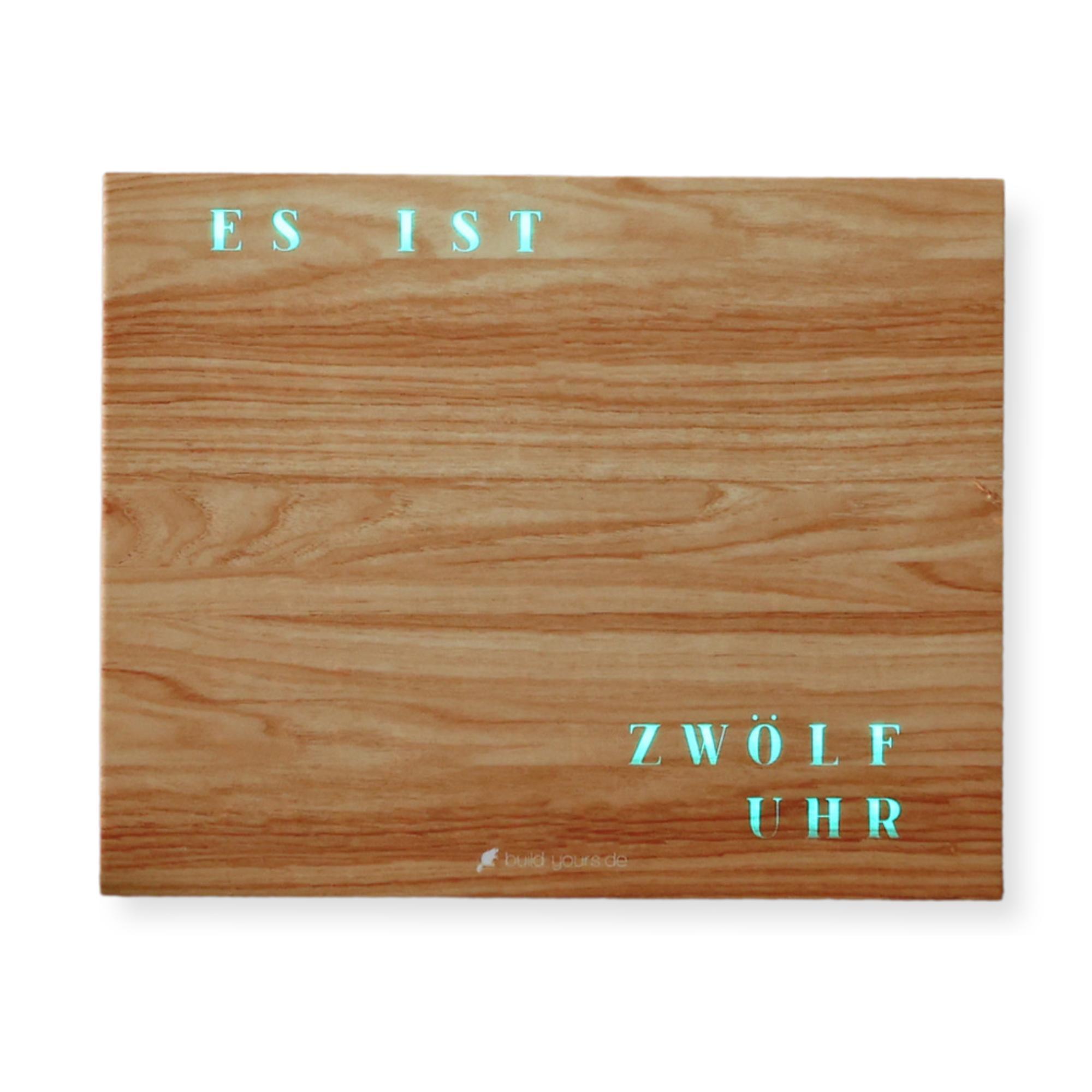 Auf Lager Versand durch Amazonbuild-yours WordClock Jupiter Holz Optik - Moderne LED Wanduhr mit Wortanzeige - Digitale Wortuhr in Deutsch