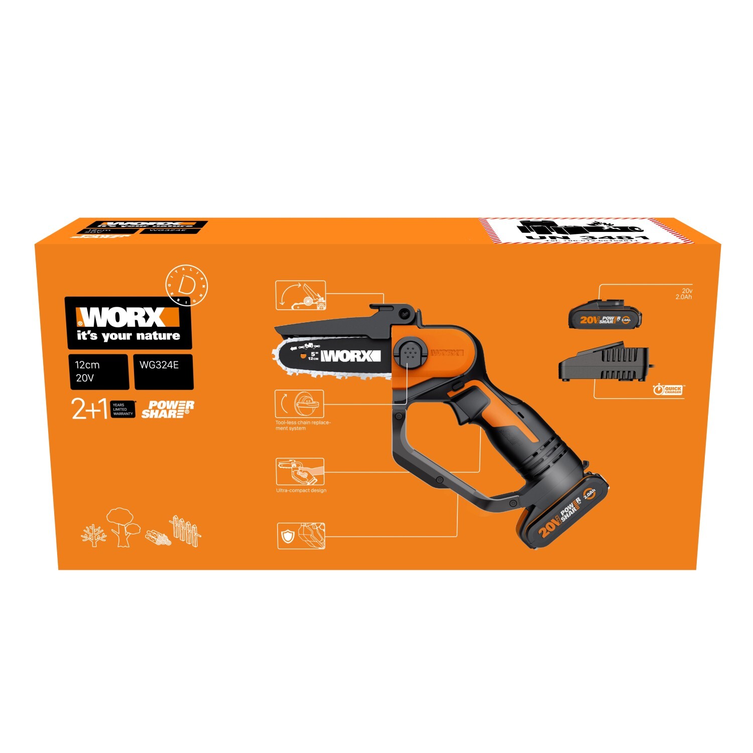 WORX - EAN: 06943475870614 - Akku-Astkettensäge Worx WG324E.9 20V 2 Ah - SOLO - OHNE AKKU UND LADEGERäT. AKKU UND LADEGERäT NICHT IN DER PACKUNG ENTHALTEN - bei agrieuro.de - aus Yadore Produktdaten Dieses Angebot ist mit 83,02 Euro ein weiteres gutes Angebot für die Worx WG324E.9 Akku-Kettensäge ohne Akku und Ladegerät. ![]() ![]() Worx WG 324E.9 (Akku Kettensäge) (WG324E.9)