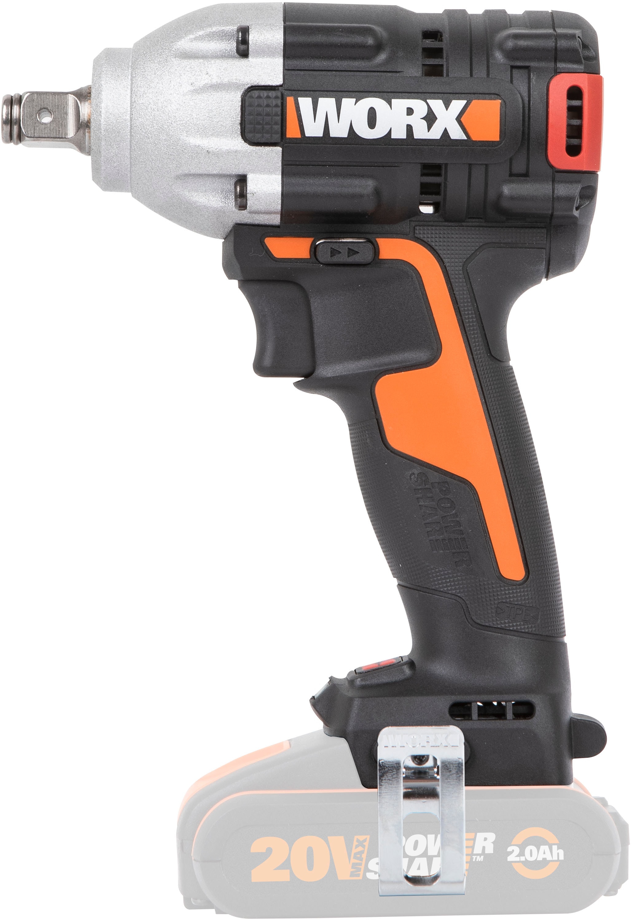 WORX - EAN: 6943475882471 - WORX WX272.9 NITRO Bürstenloser Akku Schlagschrauber 20V Der neue Worx Nitro WX272.9 eignet sich perfekt für Arbeiten am Auto oder zum Eintreiben von Zugschrauben. Sein leistungsstarker bürstenloser Motor macht beim Entfernen oder Anziehen von Radmuttern kurzen Prozess. Er verfügt über eine 3-Gang-Einstellung und einen variablen Geschwindigkeitsauslöser, um je nach Anwendung das richtige Maß an Geschwindigkeit und Leistung zu erreichen. Die bürstenlose Motortechnologie bietet mehr Leistung, Laufzeit und Langlebigkeit als ein herkömmlicher Bürstenmotor., Der 1/2''-Schlagschrauber verfügt über ein variables 3-Gang-Getriebe, das für eine Vielzahl von Anwendungen geeignet ist., Das maximale Drehmoment von 300 Nm ist ideal für das Eintreiben von Zugbolzen oder den Aufbau von Gerüsten., Dank der eingebauten LED-Leuchte können Sie auch bei schlechten Lichtverhältnissen arbeiten und Ihre Arbeit erledigen., Nur Gerät, Akku und Ladegerät nicht enthalten. Das Werkzeug ist Teil des Worx PowerShare-Akkusystems, Sie können alle Worx PowerShare 18V (20V MAX) Akkus gemeinsam nutzen., . WORX - Eine Marke der POSITEC Gruppe POSITEC steht für Positive Technology der Name ist Programm: Innovative Lösungen, die ursprüngliche Vorstellungen infrage stellen, die sowohl Profis, als auch Heimwerkern & begeisterten Gärtnern einen echten Mehrwert bei der Verwirklichung Ihrer Projekte bringen - das international! Ob bei ihren Gartengeräten, Elektrowerkzeugen oder Mäh- & ... ![]() Akku-Schlagschrauber WORX WX272.9 NITRO , bunt (schwarz, orange), B:6,1cm H:19,4cm L:15,1cm, Schrauber, ohne Akku Und Ladegerät