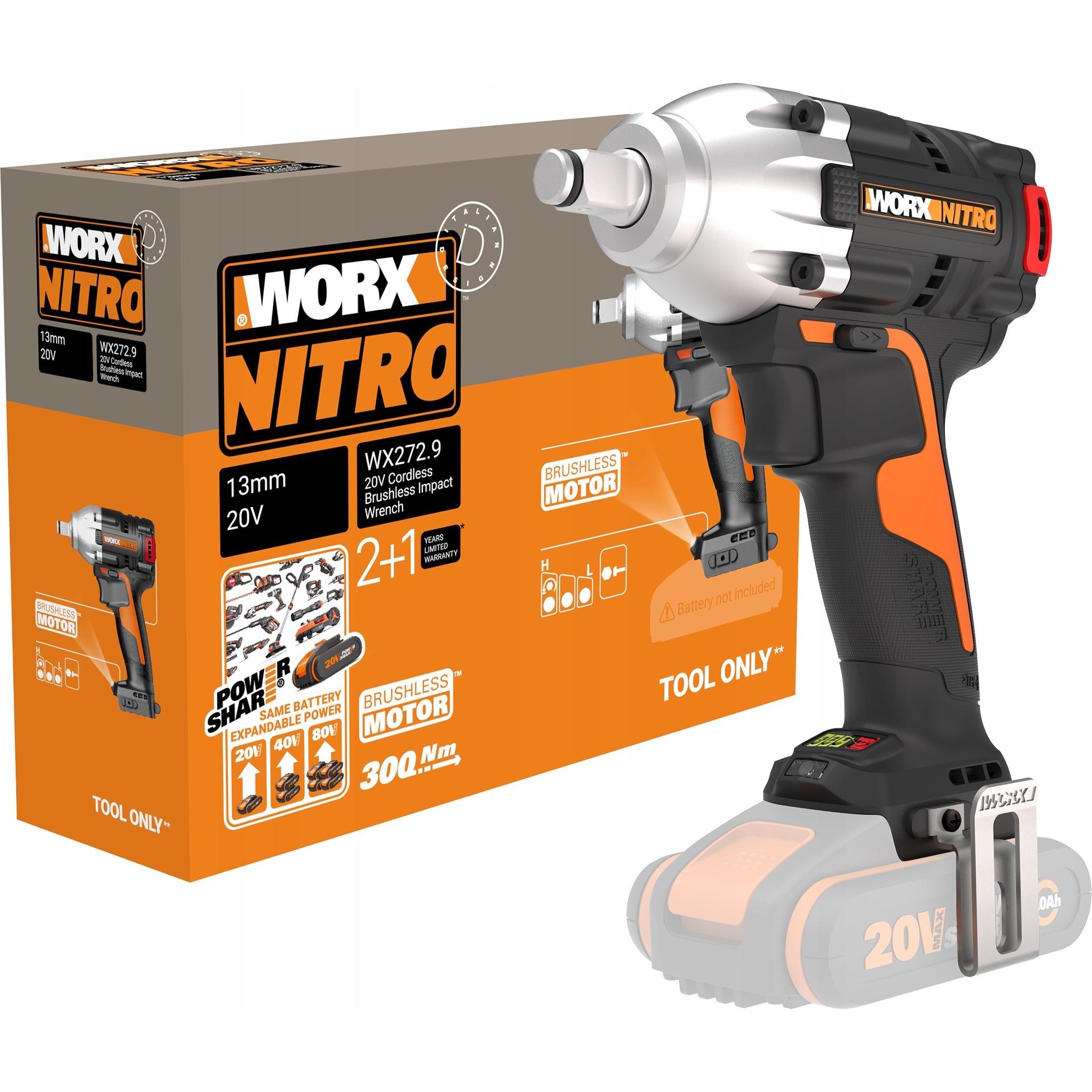 Auf Lager Versand durch AmazonWORX WX272.9 Nitro Bürstenloser Akku Schlagschrauber 20V - 300Nm, Mit Variablem 3-Gang-Getriebe Und LED-Licht - Ideal Für Diverse Schraubarbeiten - Ohne Akku Und Ladegerät