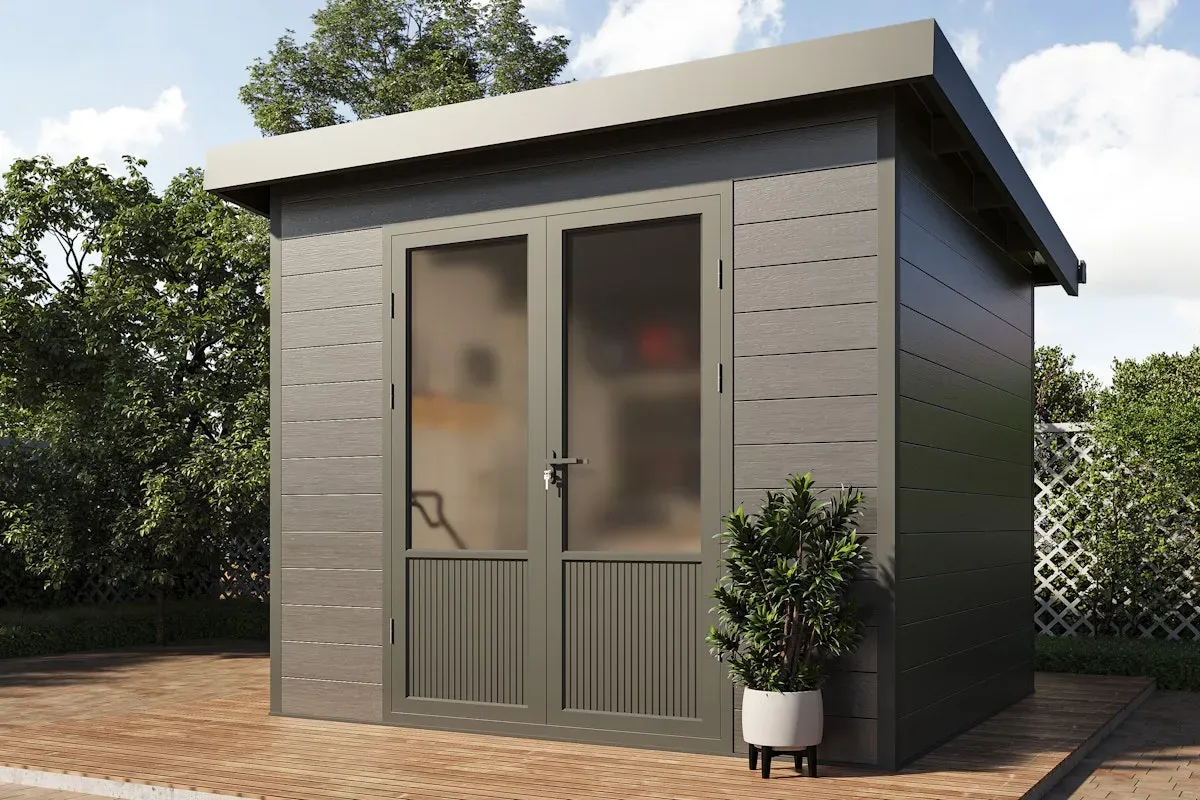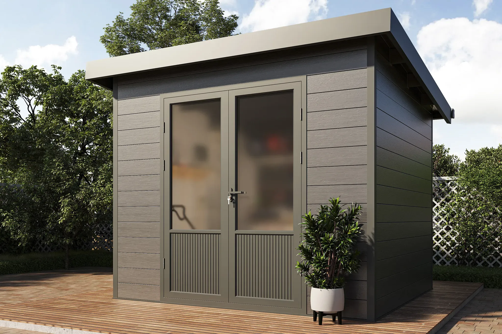 keine Angabe Gewöhnlich versandfertig in 3 bis 4 WochenFinnhaus Wolff WPC Gerätehaus Nives 2724 28 Anthrazit/Hellgrau Gerätehaus aus Holz/Kunststoff in Anthrazitgrau, Geräteschrank mit 28 mm Wandstärke Gartenhaus