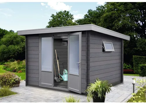 Kategorie: Gartenhäuser - Hori - Robuster WPC-Korpus mit schutzummantelter Oberfläche und stabiler Aluminiumtür bietet dauerhaften Schutz vor Feuchtigkeit, Schmutz und UV-Strahlung kein jährliches Streichen nötig. Schneelast:150 kg/m2 Großzügige Grundfläche von 6,72 m2 und Innenmaß 281 228 cm schaffen strukturierten Stauraum für Rasenmäher, Gartengeräte oder Fahrräder und schützen zuverlässig vor Wind und Wetter. Seitliche Fenster sowie zwei Belüftungsgitter bringen angenehmes Tageslicht und kontinuierliche Luftzirkulation Kondenswasser wird reduziert, Werkzeuge und Geräte bleiben trocken. Verglaste Doppeltür mit Durchgangsmaß 138 189 cm ermöglicht komfortables Ein- und Ausladen sperriger Gegenstände; flache Schwelle unterstützt barrierearmes Handling schwerer Güter. Schnelles Steck-Schraub-System mit detailliertem Benutzerleitfaden spart Montagezeit; alle Bauteile passgenau vorgefertigt Heimwerker errichten das Gartenhaus ohne Spezialwerkzeug. - 2609,37 Euro bei Amazon Marketplace Lawn & Garden - gefunden von billiger.de Das Wolff Finnhaus WPC Trend C ist ein hochwertiges Gartenhaus mit großzügigen Maßen und ansprechendem Design. ![]() ![]() Wolff Finnhaus WPC Trend C 3,4 x 2,79 x 2,22 m grau