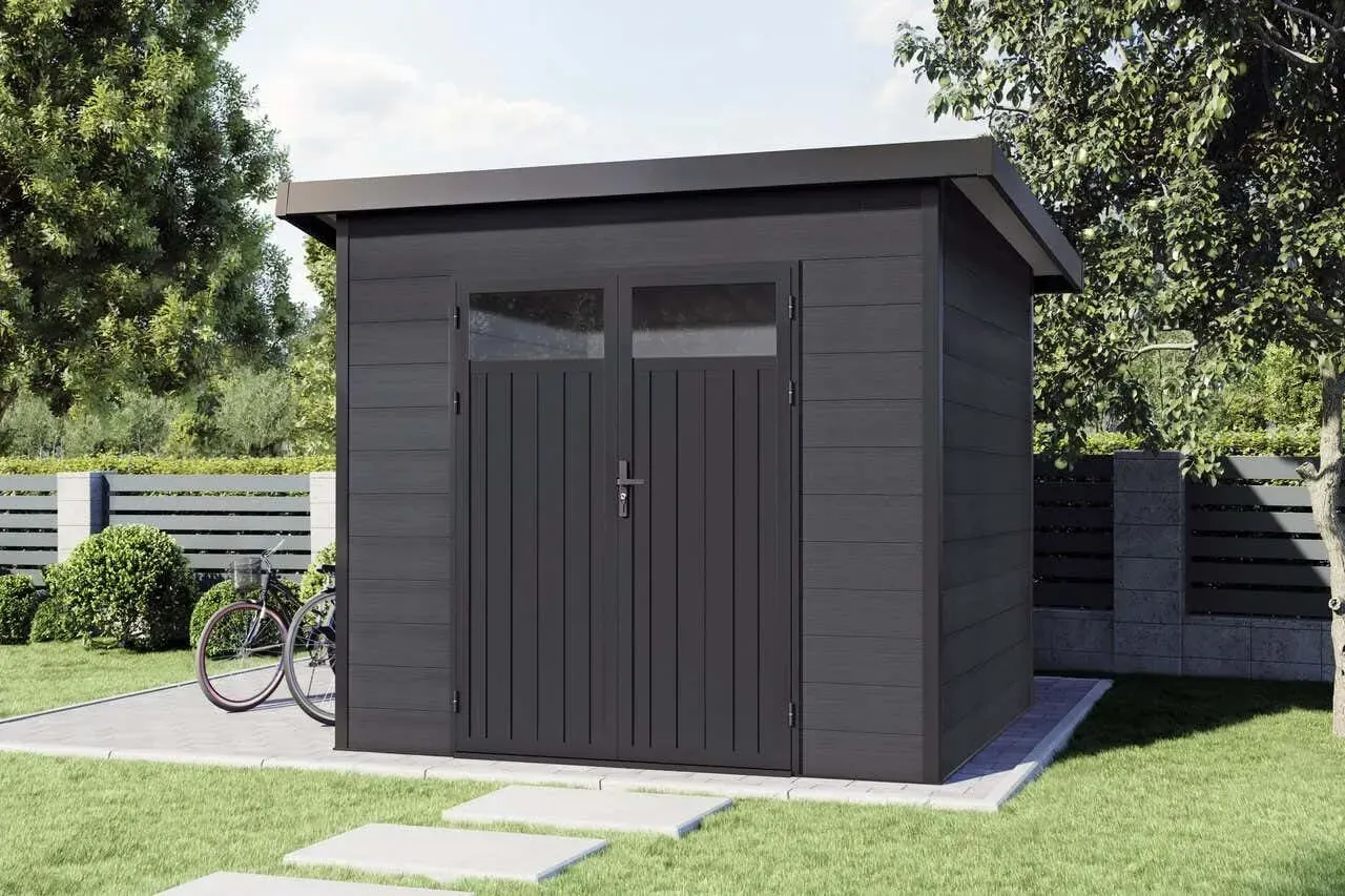 ![]() ![]() Finnhaus Wolff WPC Gerätehaus Vitale 2420 19 Anthrazit/Hellgrau Gerätehaus aus Holz/Kunststoff in Anthrazitgrau, Geräteschrank mit 19 mm Wandstärke Gartenhaus