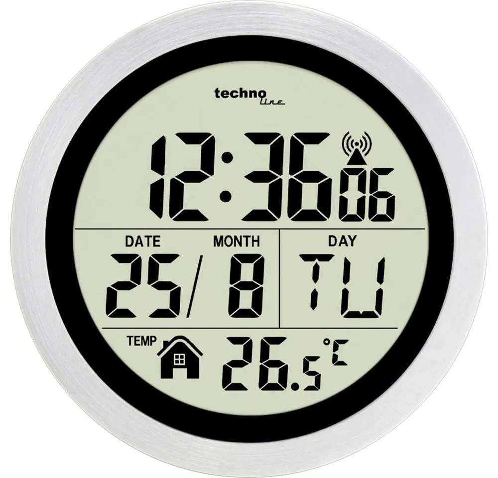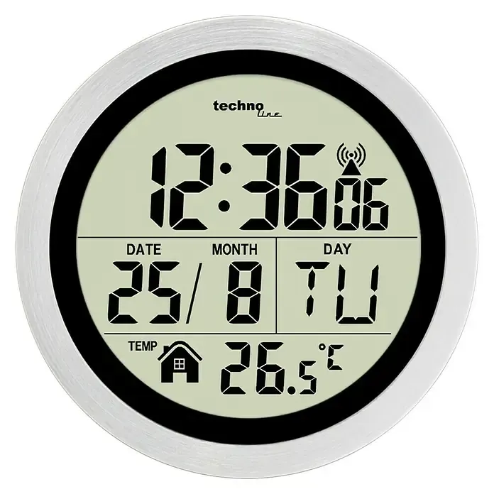 24,95 /Stück - Kategorie: Wecker - Technoline - GTIN:4029665030050 - Die Technoline WT 3005 ist eine Funk-Baduhr mit manueller Einstelloption und tollem Design in Silber und Schwarz. Sie hat eine 12/24h Zeitanzeige sowie Zeitzoneneinstellung (+/- 12h), eine Datums- und Wochentagsanzeige (8 Sprachen) sowie Innentemperaturanzeige. Die batteriebetriebene DCF-77 Funkuhr ist Feuchtigkeitsgeschützt und somit ideal für Badezimmer. Die Montage erfolgt mit Saugnapf, Wandaufhängung oder Tischaufstellung. Zur Nutzung wird eine separat erhältliche AA Mignon LR06 Batterie benötigt. - 24,95 Euro bei BAUHAUS - gefunden von billiger.de Diese Funk-Digitaluhr für das Badezimmer besticht durch ihr großes, gut ablesbares Display. ![]() ![]() WT3005 Funk-Digitaluhr - für Badezimmer eBay mit großem gut ablesbarem Display