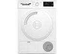 Bosch - EAN: 4242005355327 - Energieeffizienzklasse: A+ . Kondensationseffizienzklasse: B . Farbe: weiß . Fassungsvermögen: 7.00kg . Programme: Baumwolle, Pflegeleicht, Schnell/Mix, Handtücher, Zeitprogramm, 30min kalt, Zeitprogramm 30min. warm, Sportswear, Extra Kurz 40min, Blusen/Hemden, Feinwäsche . Zusatzoptionen: 120min Knitterschutz am Programmende, Trocknungsgradfeinjustage . Display: ja . Ausstattung: Restlaufzeitanzeige, Programmablaufanzeige, Endzeitvorwahl 24h, Signal am Programmende . Sicherheit: Stabilisierungstechnik, Kindersicherung . Kältemittel: R290 . Wartungshinweise: Anzeige für Flusensieb reinigen, Kondensatbehälter leeren . Geräuschentwicklung: 65dB(A) . Standardprogramm: 204min . Energieverbrauch: 243kWh/Jahr . Bauart: Standgerät . Türanschlag: rechts . Abmessungen (HxBxT): 842x598x613mm . Gewicht: 46.40kg - bei elektrokoeck.com - aus Yadore Produktdaten ![]() ![]() Bosch WTH 83003 WTH83003