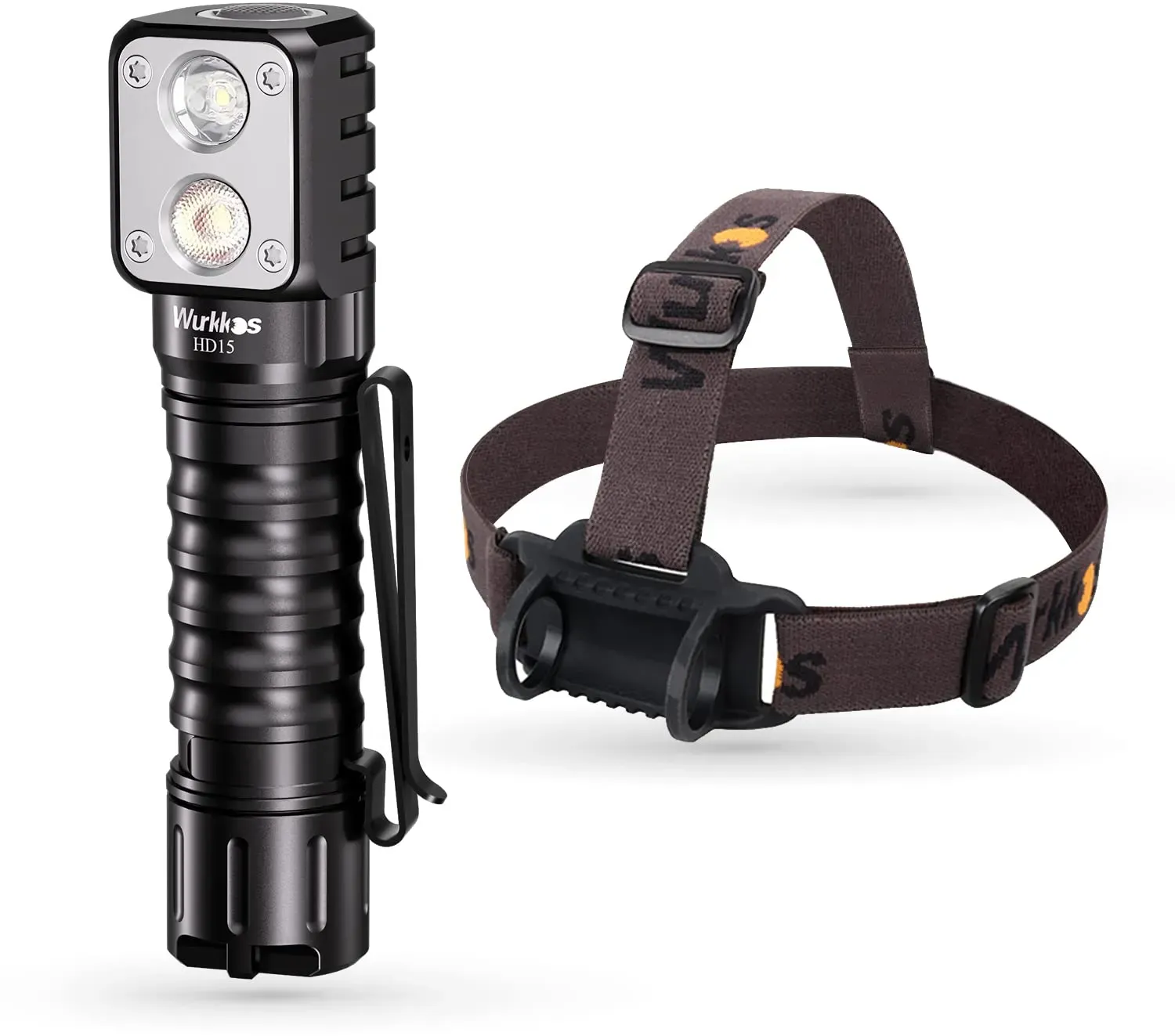 Auf Lager Versand durch AmazonWurkkos HD15 Stirnlampe,2000 Lumen Kopflampe,Spotlicht und Flutlicht,Vielseitig Einsetzbar,EDC Taschenlampe mit LH351D und SST20 LED für Outdoor und Indoor- Aktivitäten