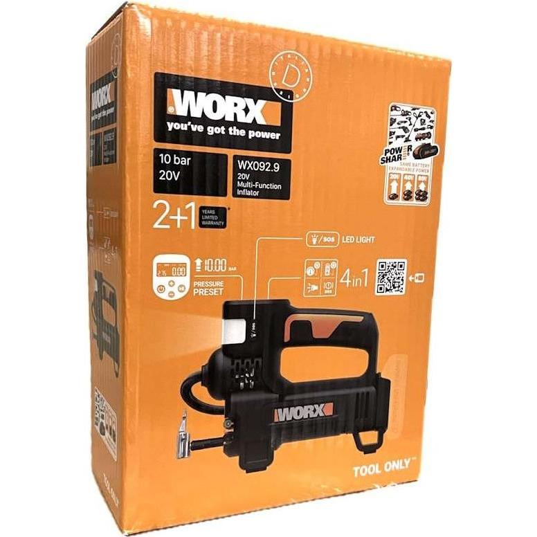 10 Händlerangebote bei billiger.de - Kategorie: Kompressoren - Worx - WORX WX092.9, 10 bar WORX WX092.9. Maximaler Betriebsdruck: 10 bar. Produktfarbe: Schwarz, Orange, Gehäusematerial: Kunststoff, Geeignet für: Auto. Energiequelle: Akku, Akku-/Batterietechnologie: Lithium-Ion (Li-Ion), Akku-/Batteriespannung: 18 V - GTIN:6924328344391 ![]() ![]() WORX WX092.9 Akku-Kompressor - 4 in 1: multifunktionale Luftpumpe mit punktgenauer Digitalanzeige & Druckkontrolle, Arbeitsleuchte & SOS-Notsignalleuchte - max. 10 bar - ohne Akku & Ladegerät