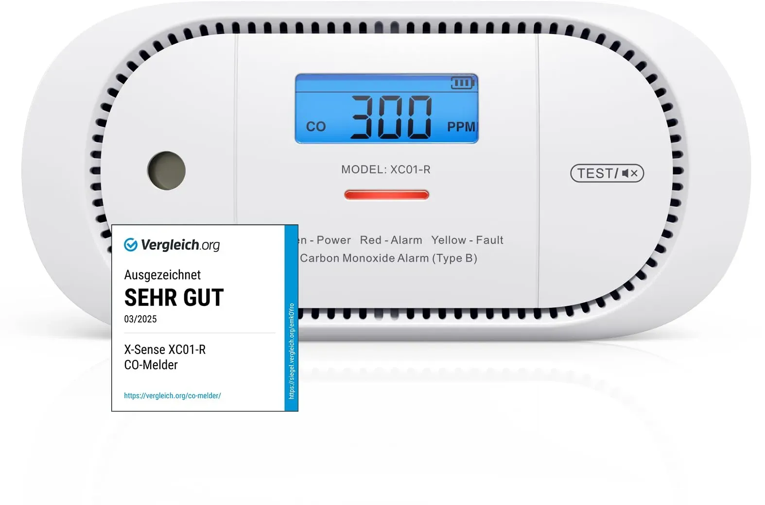3 Händlerangebote bei billiger.de - Kategorie: Gasmelder - X-Sense - X-Sense Unabhängiger Kohlenmonoxid (CO)-Melder XC01-R: Zuverlässiger Schutz für Ihr Zuhause Schützen Sie Ihre Familie vor der unsichtbaren und geruchlosen Gefahr von Kohlenmonoxid (CO) mit dem X-Sense Unabhängiger Kohlenmonoxid-Melder XC01-R. Dieses kompakte Gerät bietet hochpräzise CO-Erkennung und eine Vielzahl intelligenter Funktionen, die für Ihre Sicherheit sorgen. Mit einem lauten Alarm, einem klaren Digitaldisplay und einer einfachen Installation ist der XC01-R die ideale Lösung für eine zuverlässige überwachung in jedem Raum. Warum der X-Sense XC01-R Ihre beste Wahl für CO-Sicherheit ist: Präzise und Zuverlässige Früherkennung Der XC01-R ist mit einem hochmodernen elektrochemischen Figaro-CO-Sensor ausgestattet, der eine präzise und schnelle Erkennung von Kohlenmonoxid-Konzentrationen ermöglicht. Im Notfall warnt Sie der Melder sofort mit einem lauten 85-Dezibel-Alarm, damit Sie und Ihre Familie rechtzeitig reagieren können. Die 10-jährige Lebensdauer des Sensors und die 5-jährige austauschbare CR123A-Lithium-Batterie gewährleisten einen langfristigen und konstanten Schutz. übersichtliches Digitales LCD-Display Das leicht ablesbare digitale LCD-Display zeigt Ihnen jederzeit die Echtzeit-CO-Konzentration (in PPM) an und speichert sogar den seit dem letzten Zurücksetzen erkannten Höchstwert. Es informiert Sie zudem über den Status des Geräts, von Fehlern über eine schwache Batterie bis zum Ende der ... ![]() ![]() X-Sense Kohlenmonoxid Melder, TüV-Zertifiziert, mit digitalem LCD-Display, CO Melder mit austauschbarer 7-Jahres-Batterie und Spitzenwertspeicher, XC01-R