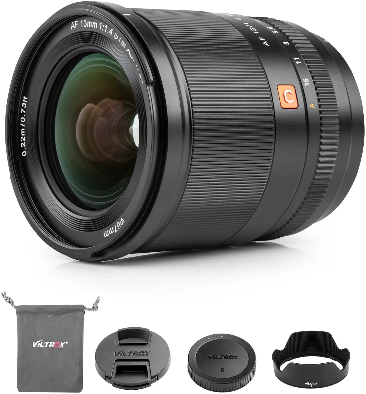 Gewöhnlich versandfertig in 3 bis 4 TagenViltrox 13mm F1.4 Ultra-Weitwinkel-Autofokus-Objektiv, kompatibel mit Fuji X-Mount-Kameras X-A10 X-A3 X-A5 X-A7 X-S10 X-T20 X-T3 X-T4 X-T1 X-E2S X -Pro2 X-Pro3 X-E3 X-E4