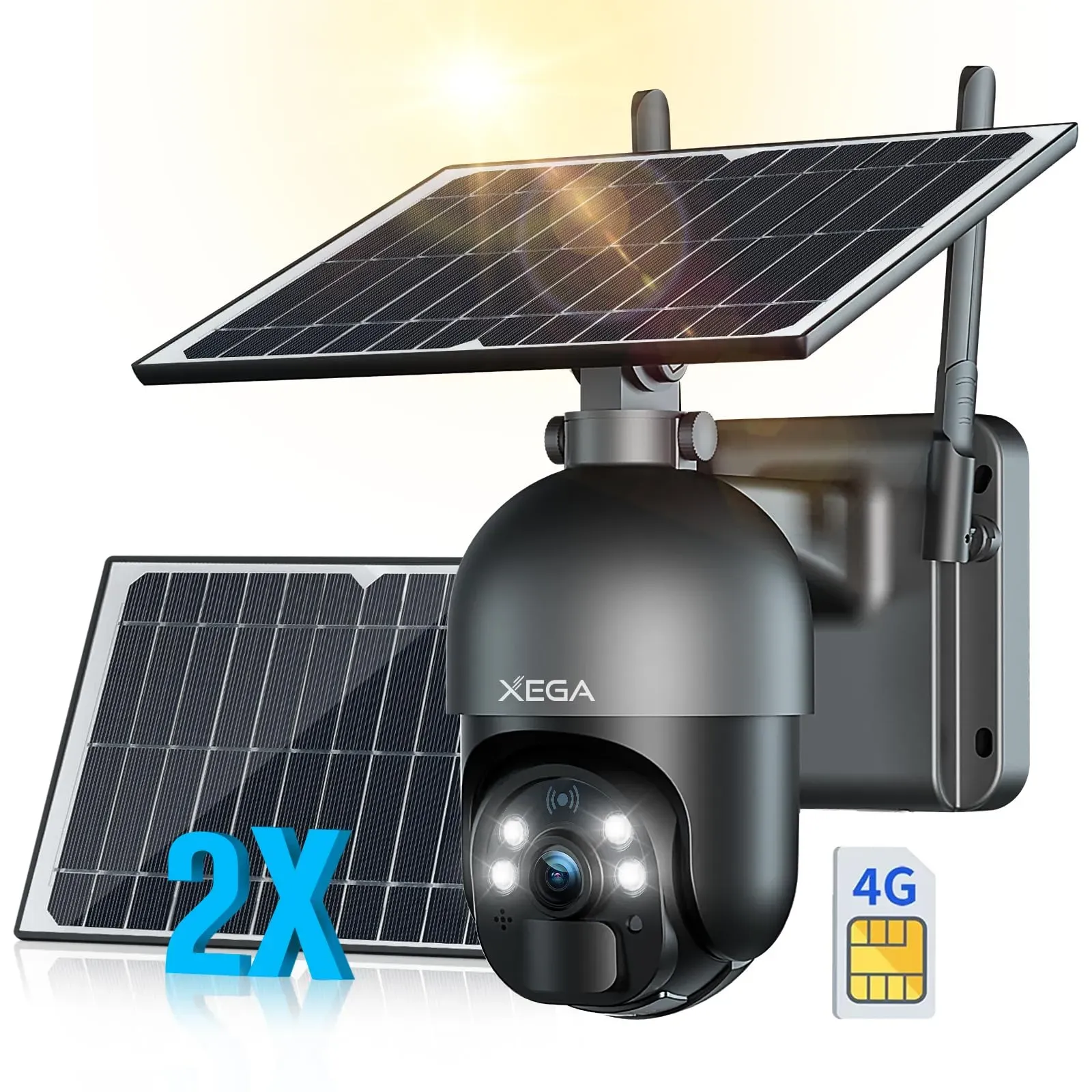 Kategorie: überwachungskameras - Xega - NEUES KONFIGURATIONS-UPGRADE Eingebauter 10400mAh Akku mit großer Kapazität und 2 Stück 6W Solarpaneele ermöglichen es, dass diese überwachungskamera mit SIM-Karte überall ohne Netzkabel verwendet werden kann, und die Non-Stop-Stromversorgung von den doppelten Solarpanelen wird es mit einer langen Betriebszeit bieten. Ein Satz von 2 Solarmodulhalterungen ist im Lieferumfang enthalten, so dass Sie die Solarmodule und überwachungskameras zusammen oder getrennt installieren können. 2-fache Ladeeffizienz, 2-facher Zugang zum Sonnenlicht, und Sie müssen sich keine Gedanken über die Sonneneinstrahlungszeit im Winter machen. WIRELESS 3G/4G CONNECTION Diese drahtlose 3g/4g überwachungskamera mit Simkarte kann dort eingesetzt werden, wo Wi-Fi nicht zugänglich ist. Eine EBOITCLUB-SIM-Karte mit 300 MB Probezeit ist im Paket enthalten(in der Kamera installiert), die für Ihre sofortige Einrichtung bequem ist. 100% kabellos und ohne WLAN. Sie können SIM-Karten von Deutsche Telekom, AG, Vodafone, O2, SFR, Orange, Bouygues, TIM, etc. verwenden. HD-NACHTSICHT & 355 WEITSICHT Diese überwachungskamera mit sim karte verfügt über zwei Modi für HD-Nachtsicht. Weißes Spotlight ermöglicht der akku überwachungskamera farbenfrohes und scharfes 2K Filmmaterial. IR LED Modus ermöglichen der outdoor kamera überlegene Qualität auch ohne Farbe ein klares Bild. Diese überwachungskamera solar des Kopfes durch 355 Schwenken und 95 Neigen, und 4x Digitalzoom. Die ... Eine hochwertige Outdoor-Kamera mit Solarpanel, 2K HD und PTZ-Funktion für umfassende Überwachung. ![]() ![]() Xega 3G/4G LTE überwachungskamera Aussen Solar mit SIM Karte 2K HD 3MP PTZ Kabellos Kamera Ohne WLAN Outdoor Akku 355 /90 Schwenkbar Farb/IR Nachtsicht 2-Wege-Audio PIR Erkennung IP66