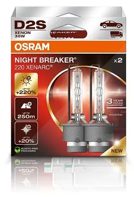 Auf Lager Versand durch AmazonOsram XENARC NIGHT BREAKER 220, D2S, +220% mehr Helligkeit, Xenon-Scheinwerferlampe, 66240XN2-2HB, Faltschachtel (2 Lampen)