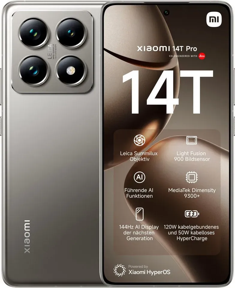 Handys Smartphones Lifestyle Technik Kommunikation Handys Organizer - - Das Xiaomi 14T Pro ist ein Android-Smartphone, das im September 2024 vorgestellt wurde und zu den leistungsfähigen Modellen von Xiaomi zählt. Auch wenn es zum Veröffentlichungszeitpunkt 2025 noch recht frisch auf dem Markt ist, bietet es moderne Technik, ein helles Display und vielseitige Kameraoptionen - verpackt in einem kompakten, zeitgemäßen Design. Wichtige Funktionen: Veröffentlichung: September 2024 Display: 6,67 Zoll AMOLED, 1,5K-Auflösung (2712 × 1220 Pixel), 144 Hz Bildwiederholrate Prozessor: MediaTek Dimensity 9200+ Chipsatz mit starker Leistung für Multitasking Hauptkamera: Triple-Kamera: 200 MP (Weitwinkel, OIS), 8 MP (Ultraweitwinkel), 2 MP (Makro) Frontkamera: 20 MP für Selfies und Videotelefonie Bauweise: Aluminiumrahmen, Gorilla Glass Victus auf der Vorderseite, IP68-zertifiziert gegen Staub und Wasser System: MIUI 15 basierend auf Android 14 bei Auslieferung Konnektivität: 5G, WLAN 6E, Bluetooth 5.3, USB-C Für wen ist dieses Handy geeignet? Das Xiaomi 14T Pro spricht Nutzer:innen an, die Wert auf ein aktuelles und vielseitiges Android-Handy legen. Die Kombination aus dem hochauflösenden AMOLED-Display und der leistungsfähigen Kamera ist besonders für Vielnutzer:innen, Foto-Fans oder Mobile-Gamer:innen attraktiv. Wer von älteren Xiaomi-Modellen wie dem Xiaomi 12T oder anderen Mittelklasse-Geräten upgraden möchte, erhält hier ein Technikpaket mit modernen Standards - ohne spezielle ... Ein solides Angebot für ein neues Gerät in Titan Black von billiger.de, das einen guten Mittelweg darstellt. ![]() ![]() Xiaomi 14T Pro 5G 512 GB Titan Black