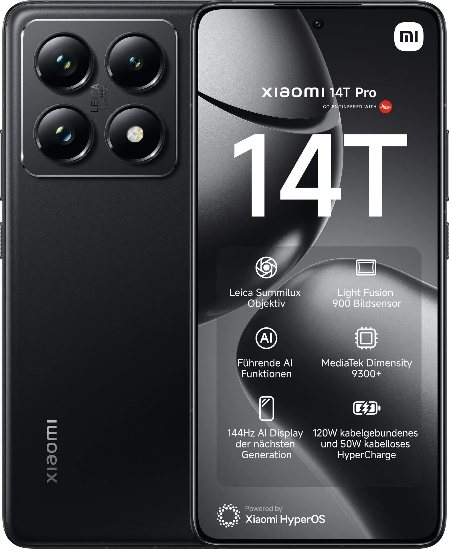 Auf Lager Versand durch AmazonXiaomi 14T Pro, 5G Smartphone, 12+512GB Handy ohne Vertrag, 144Hz 6.67'' AI Display, Leica Kamera, MediaTek Dimensity 9300+, 5000mAh, 120W HyperCharge, Dual-SIM, Black