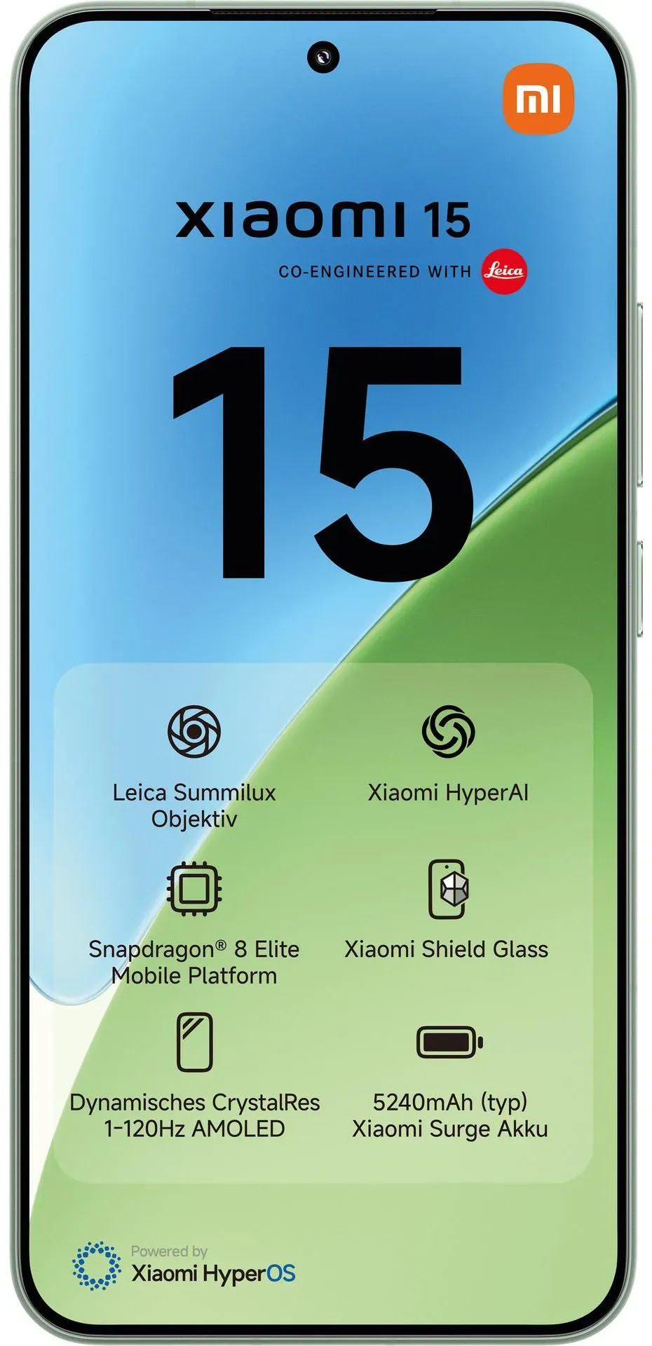 Prepaid-Handys Gesamtsortiment IT + Multimedia Smartphones + Tablets Smartphone Mobiltelefone - EAN:6932554406202 - Das Xiaomi 15 setzt neue Massstäbe in der Smartphone-Technologie mit innovativen Kamerafunktionen, einem hochwertigen Display und leistungsstarker Performance. Ausgestattet mit einem Leica Summilux-Objektiv und der Snapdragon 8 Elite Mobilplattform bietet es herausragende fotografische Fähigkeiten und eine reibungslose Bedienung. Das 6,36-Zoll CrystalRes AMOLED-Display mit einer adaptiven Bildwiederholfrequenz von 1 bis 120 Hz sorgt für lebendige Bilder und hohe Energieeffizienz. Dank modernster Konnektivität mit Wi-Fi 7, 5G Dual-SIM und NFC ist das Xiaomi 15 bestens für die Zukunft gerüstet. Ein ultraschallbasierter Fingerabdrucksensor ermöglicht schnelles und sicheres Entsperren, während Dolby Atmos Stereo-Lautsprecher und Hi-Res Audio-Unterstützung für ein beeindruckendes Klangerlebnis sorgen. Angetrieben von 12 GB RAM und 256 GB Speicher ermöglicht das Gerät nahtloses Multitasking. Mit HyperOS und Xiaomi HyperAI bietet das Xiaomi 15 intelligente Optimierungen für maximale Leistung und Effizienz. Hinweis: Ein Smartphone-Ladegerät ist nicht im Paket enthalten - es wird nur ein USB-C-Kabel zum Laden bereitgestellt. - gefunden von Kelkoo Das Xiaomi 15 in Grün mit 512GB Speicher bietet eine hohe Auflösung und viel Platz für Daten. ![]() ![]() Xiaomi 15, 16,1 cm (6.36"), 2670 x 1200 Pixel, 12 GB, 512 GB, 50 MP, Grün - Grün