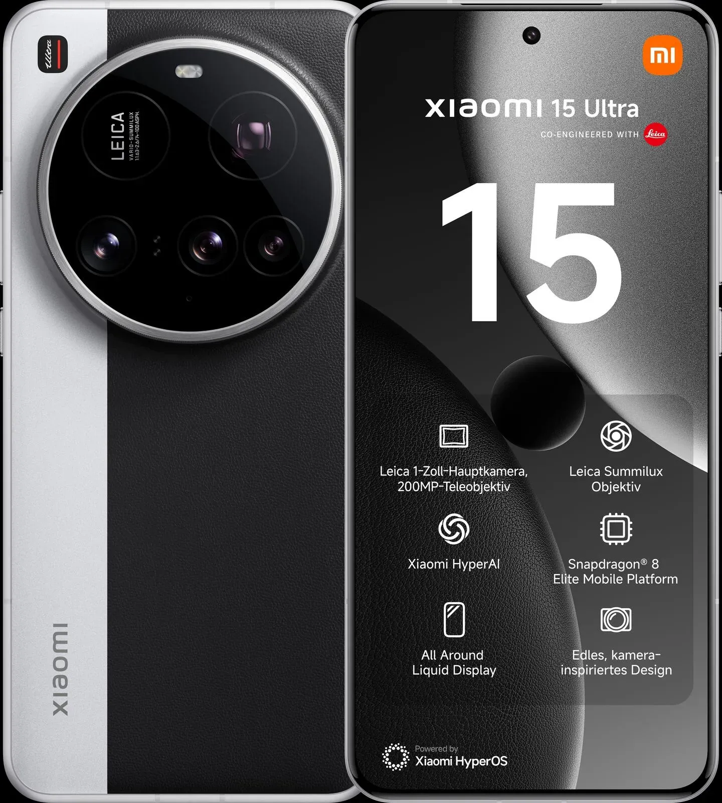 Kategorie: Handys ohne Vertrag - Xiaomi - GTIN:6932554405946 - Xiaomi 15 - 5G Smartphone - 12 GB/512 GB - 6.36' - Weiß - 689,59 Euro bei Office Partner GmbH - gefunden von billiger.de Dieses Xiaomi 15 Ultra in Schwarz bietet eine beeindruckende Leica Kamera und High-End-Spezifikationen zu einem guten Preis im Marketplace. ![]() ![]() XIAOMI 15 Ultra Smartphone, 16+512GB, Schwarz, Handy ohne Vertrag, 100mm 200MP Leica Kamera, 120Hz WQHD+ AMOLED Display, Snapdragon 8 Elite, 5410mAh, 90W HyperCharge, Hyper AI, Dual-SIM