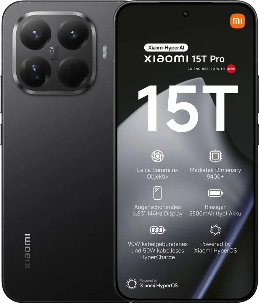 Verfügbarkeit: auf Lager - Kategorie: Handys ohne Vertrag - Xiaomi - GTIN:6932554447564 - 15T PRO BLACK 12GB RAM 512GB ROM - 719,00 Euro bei Media Markt Online Shop - gefunden von billiger.de Ein empfehlenswertes Angebot für das 512 GB Modell in Schwarz von einem vertrauenswürdigen Marktplatz mit 2 Jahren Garantie. ![]() ![]() XIAOMI 15T Pro, Smartphone 12+512GB, 6,83" 144Hz augenschonendes Display, MediaTek Dimensity 9400+, 50MP Leica 5X Pro Teleobjektiv, 5500mAh, Schwarz, 2 Jahre Garantie