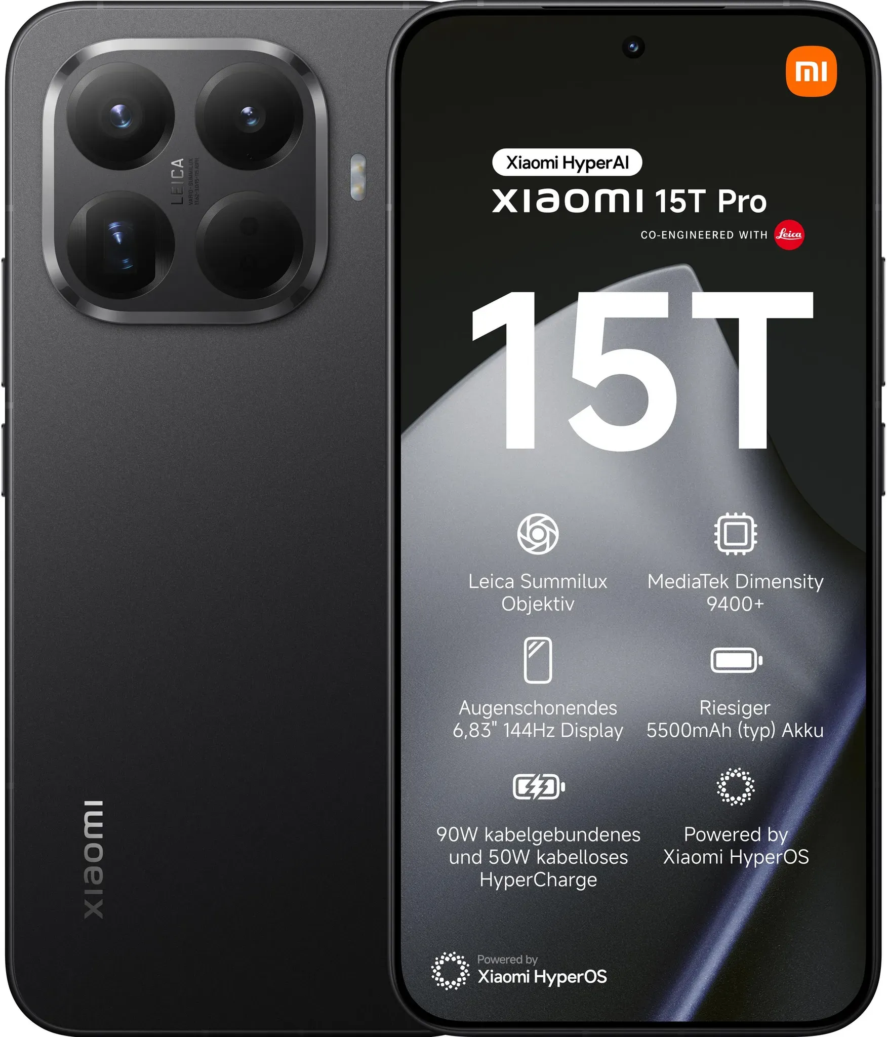 Verfügbarkeit: 1-2 Werktage - Kategorie: Handys ohne Vertrag - Xiaomi - GTIN:6932554447601 - Kaufen Sie das XIAOMI 15T Pro Smartphone (12+512GB, 6,83' 144Hz Display, Dimensity 9400+, 50MP Leica 5X Pro Teleobjektiv, 5500mAh, Titan) und erhalten Sie einen kostenlosen Xiaomi Sound Party (50W) Lautsprecher, wenn Sie Ihren Kauf zwischen dem 24. September und dem 10. Oktober 2025 registrieren. inklusive. - 626,90 Euro bei Joybuy - gefunden von billiger.de Ein attraktives Angebot für die 512GB-Version in Schwarz von Galaxus.de. ![]() ![]() Xiaomi 15T Pro (512 GB, Black, 6.83", Dual SIM, 5G), Smartphone, Schwarz