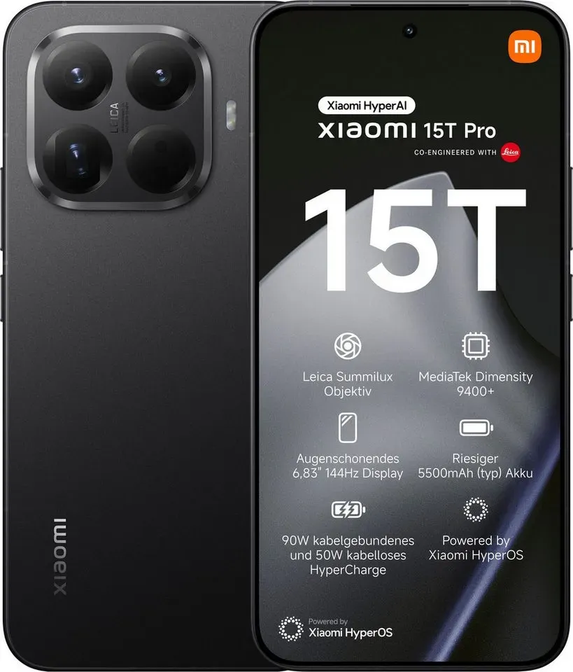 lieferbar-in 3-4 Werktagen bei dirXiaomi Xiaomi 15T Pro 12 RAM 1TB / 512GB / 256GB Smartphone (6.83 Zoll, 512 GB Speicherplatz, 50 MP Kamera) schwarz