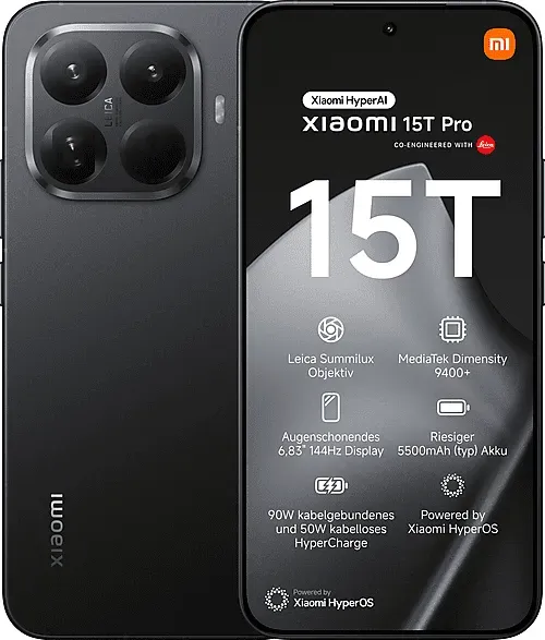 Zustand: Gebraucht - Simlockfreie Handys - XIAOMI Xiaomi - 15T Pro 6932554463144 - EAN: 6932554463144 - Professionelle Leica-Optik, Meisterwerke zum Greifen nah Erlebe Fotografie auf einem völlig neuen Niveau: Mit dem ersten 5-fach-Teleobjektiv der Xiaomi T Series kannst du Momente so festhalten, wie du sie noch nie gesehen hast. Ob 5-facher optischer Zoom, 10-facher Zoom auf optischem Niveau oder beeindruckender Ultra-Zoom von bis zu 20-fach - jedes Detail wird klar, lebendig und zum Greifen nah. In Kombination mit der legendären Leica-Optik entstehen Aufnahmen, die nicht nur Erinnerungen bewahren, sondern sie zu echten Meisterwerken machen. Ideal, wenn du deine Storys mit Bildern erzählen willst, die Emotionen einfangen und Eindruck hinterlassen. Dimensity 9400+, 3nm Prozess auf Flagship-Niveau Spüre, was echte Power bedeutet: Der MediaTek Dimensity 9400+ liefert dir Spitzenleistung, die du sofort bemerkst - egal, ob du die neuesten Games spielst, Videos in Profiqualität bearbeitest oder einfach blitzschnell zwischen Apps wechselst. Dank modernstem 3nm-Prozess kombiniert er rohe Geschwindigkeit mit beeindruckender Energieeffizienz. Das bedeutet für dich: kompromisslose Performance, die nicht nachlässt - selbst bei intensiver Nutzung. So bist du jederzeit bestens ausgestattet, wenn es auf Geschwindigkeit, Stabilität und reibungsloses Arbeiten ankommt. 5500mAh, Führende Akkuleistung Mehr Energie für deinen Tag: Mit satten 5500mAh bietet dieser Akku die stärkste Ausdauer, ... Media Markt bietet das schwarze Modell für 849.99 Euro an, was eine gute Option für Kunden ist, die bei einem großen Elektronikhändler kaufen möchten. ![]() ![]() XIAOMI 15T Pro 512 GB Black Dual SIM