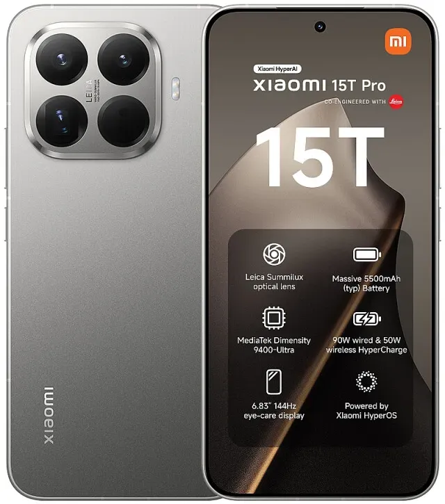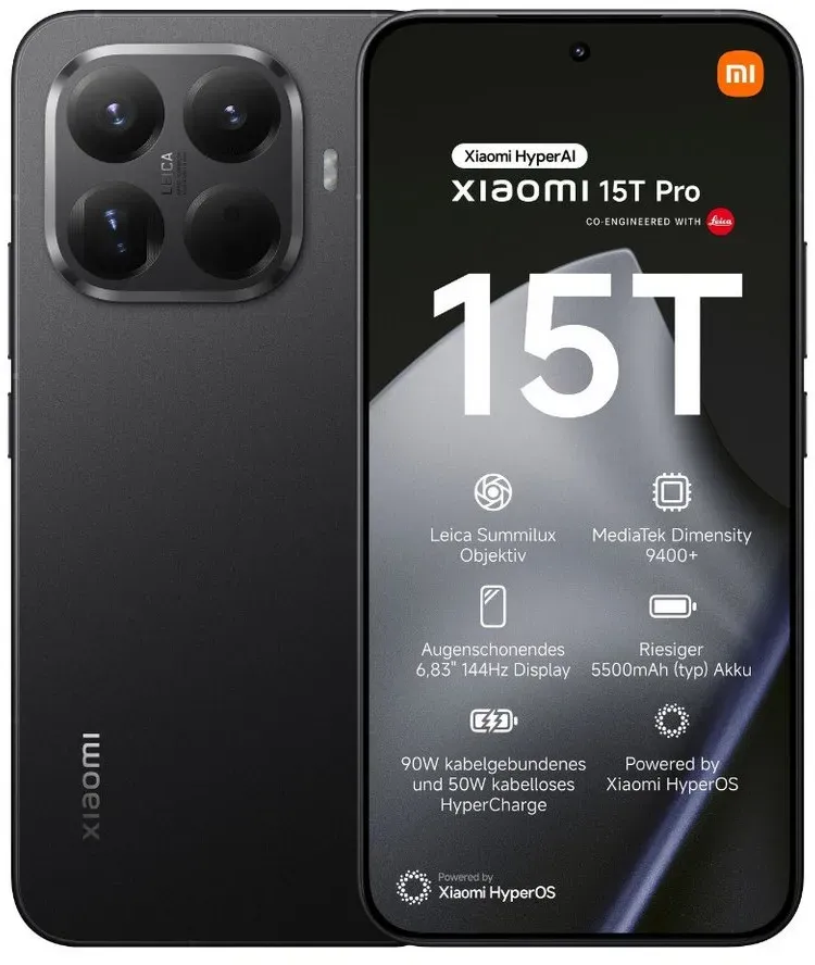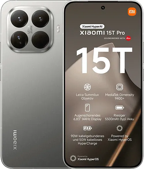 38 Händlerangebote bei billiger.de - Kategorie: Handys ohne Vertrag - Xiaomi - Das Xiaomi 15T Pro ist ein Premium-Flaggschiff-Smartphone, das fortschrittliche Technologie, elegantes Design und ein leistungsstarkes Leica-Kamerasystem für professionelle Fotografie und ein herausragendes Benutzererlebnis vereint. Es verfügt über eine 50 MP Hauptkamera mit einem Light Fusion 900 Sensor, ein 115 mm Super-Teleobjektiv mit 5-fachem optischen Zoom, ein 12 MP Ultra-Weitwinkelobjektiv und eine 32 MP Selfie-Kamera, die aussergewöhnliche Bildqualität in jeder Situation liefert. Das 6,83 Zoll grosse AMOLED-Display bietet eine Bildwiederholrate von 144 Hz, eine Helligkeit von bis zu 3200 Nits, HDR10+, Dolby Vision und TüV Rheinland-Zertifizierungen, die lebendige Visualisierungen und Komfort bei längerer Nutzung gewährleisten. Angetrieben vom MediaTek Dimensity 9400+ Prozessor, der auf einem 3 nm Prozess basiert, mit LPDDR5X RAM und UFS 4.1 Speicheroptionen von bis zu 1 TB, bietet es schnelle Leistung und reibungsloses Multitasking. Der 5500 mAh Akku mit 90 W kabelgebundenem und 50 W kabellosem Xiaomi HyperCharge-Technologie sorgt für langanhaltende Energie und schnelles Aufladen mit intelligenter Optimierung für die Akkugesundheit. Integriertes HyperAI mit Funktionen wie Google Gemini, Circle to Search, KI-Schreiben, übersetzung und Spracherkennung macht es zu einem intelligenten Assistenten für Arbeit, Kreativität und Unterhaltung. Mit IP68-Schutz, Dual-SIM- und eSIM-Unterstützung, ... Ein sehr günstiges Angebot von einem Marketplace-Händler, das die Display-Eigenschaften hervorhebt. ![]() ![]() XIAOMI 15T Pro, Smartphone 12+512GB, 6,83" 144Hz augenschonendes Display, MediaTek Dimensity 9400+, 50MP Leica 5X Pro Teleobjektiv, 5500mAh, Schwarz
