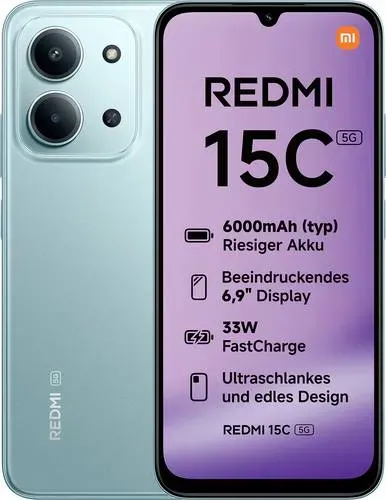 Zustand: Gebraucht - Simlockfreie Handys - XIAOMI Xiaomi - MZB0M9QEU 6932554477509 - EAN: 6932554477509 - Massiver 6000mAh Akku - Ausdauer für den ganzen TagDas Redmi 15C 5G kombiniert einen leistungsstarken 6000mAh Akku mit einem schlanken, modernen Design. Genieße stundenlang Videos, Games und Social Media - ohne ständiges Nachladen. Immersives 6,9'-Display mit bis zu 120Hz AdaptiveSyncDank einer adaptiven Bildwiederholrate von bis zu 120Hz passt sich das Redmi 15C 5G automatisch an verschiedene Nutzungsszenarien an. So erlebst du ein flüssigeres und reaktionsschnelleres Bild - egal ob beim Surfen oder Streamen. Redmi 15C 5G mit Google GeminiDein smarter KI-Assistent von Google unterstützt dich beim Schreiben, Lernen, Brainstormen und vielem mehr - direkt auf deinem Smartphone. 50MP KI-Dualkamera-SystemDie 50MP-Hauptkamera fängt feinste Details und lebendige Farben ein - perfekt, um deine schönsten Momente festzuhalten, ob in belebten Straßen, bei Porträts, kulinarischen Highlights oder atemberaubenden Sonnenuntergängen. Stets flüssige PerformanceAngetrieben vom MediaTek Dimensity 6300 mit effizientem 6nm-Prozess bietet das Redmi 15C 5G reibungsloses Multitasking und hervorragende Energieeffizienz. Genieße starke Leistung bei gleichzeitig längerer Akkulaufzeit - alles in einem schlanken Gerät. - 2 Händler im amazon.de Marketplace Ein attraktiver Preis für das 256 GB Modell in Dusk Purple von einem Amazon Marketplace Händler. ![]() ![]() Xiaomi REDMI 15C 5G, Smartphone 4+256GB, 6,9" 120Hz Display, MediaTek Dimensity 6300 Prozessor 6nm Octa-Core, 50MP KI-Dualkamera, 6000mAh, Dämmerungslila