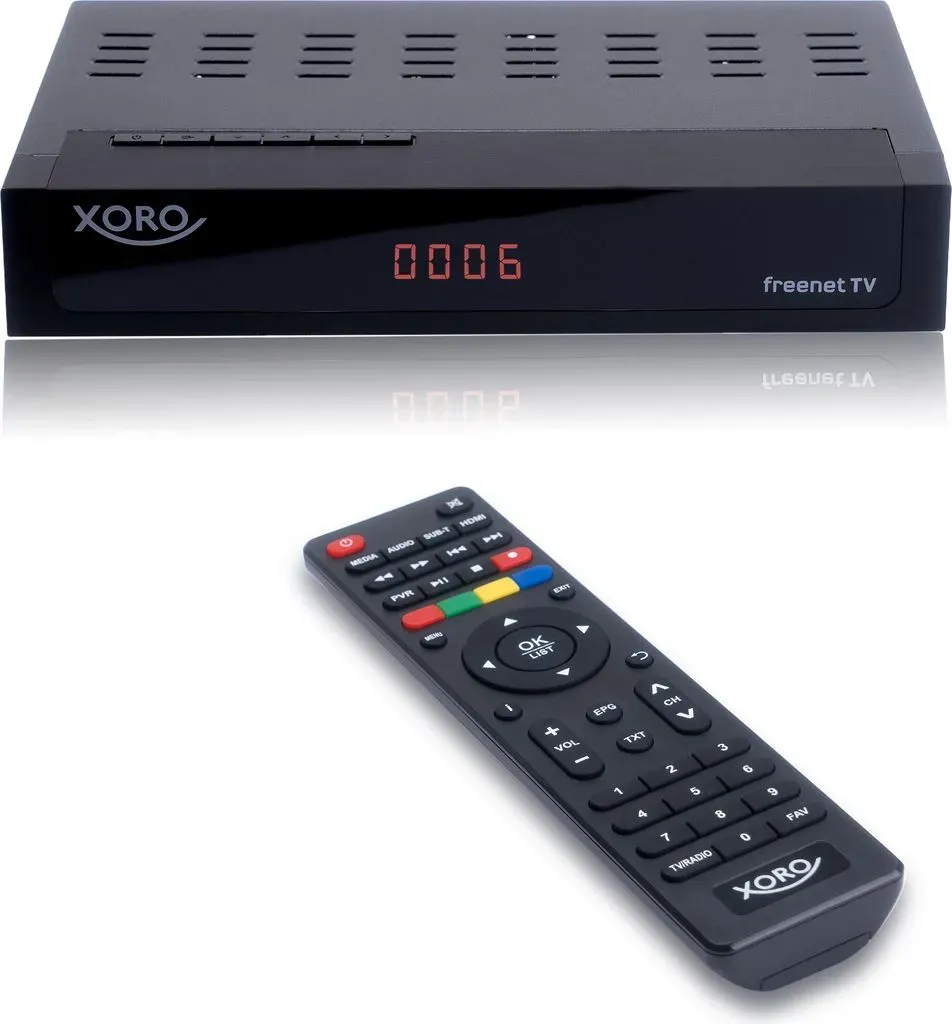 Gesamtsortiment IT + Multimedia TV + Heimkino TV Empfangstechnik TV Receiver Set Top Boxes & Receivers - EAN:4260427612941 - Kompakt und mit grosser Leistung macht der XORO HRT 8730 das digitale Antennenfernsehen zum Erlebnis. Mit dem Gerät empfangen Sie zahlreiche Sender in brillanter Bildqualität - bis hin zu Full HD. Dank des integrierten Irdeto-Entschlüsselungssystems empfangen Sie mit dem Receiver nicht nur die öffentlich-rechtlichen Sender, sondern auch die privaten Programme. Der XORO HRT 8730 ist selbstverständlich auch für freenet TV zertifiziert. Natürlich empfängt der HRT 8730 auch alle bisherigen DVB-T Sender. Die Erstinstallation des Receivers ist nach wenigen Tastendrücken abgeschlossen. Übersichtliche und einfach verständliche Bildschirmmenüs erleichtern die weiteren Einstellungen sowie den täglichen Betrieb. Durch Anschluss eines USB-Speichergerätes verwandelt sich der XORO HRT 8730 in einen Rekorder mit Timeshift-Funktion. Der Receiver ist auch für den Empfang der unverschlüsselten Sender des digitalen Kabelfernsehens geeignet (evtl. ist hierfür ein Software-Update notwendig). - gefunden von Kelkoo Dieser DVB-T2 Receiver mit integriertem Freenet TV Entschlüsselungssystem und Twin-Tuner ist ideal für terrestrisches Fernsehen. ![]() ![]() XORO HRT 8770 TWIN DVB-T2 FHD Receiver integriertes Freenet TV Entschlüsselungssystem TWIN-Tuner (zwei Empfangsteile) PVR Ready Timeshift Mediaplayer
