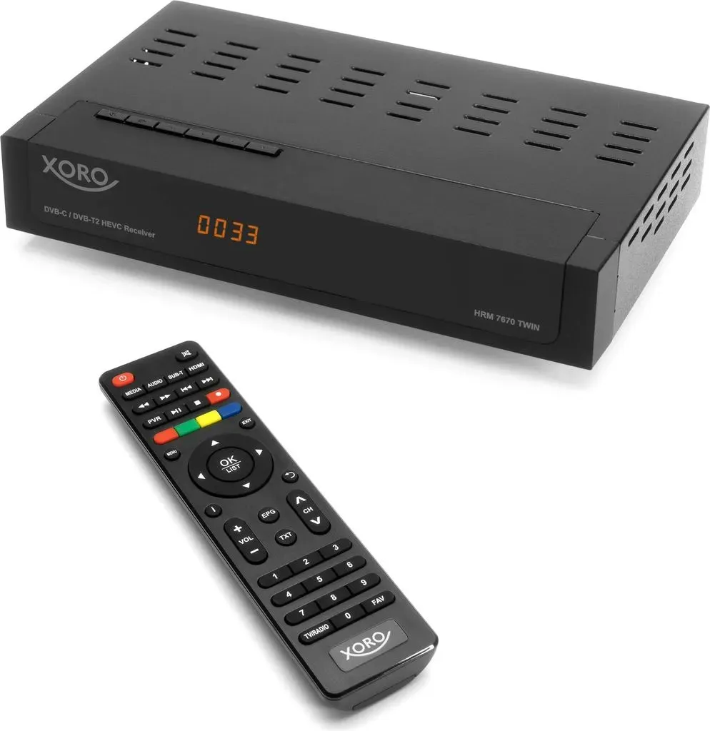 Kategorie: DVB-T2 Receiver - Xoro - GTIN:4260427611371 - Tauchen Sie ein in eine Welt voller Vielfalt mit dem XORO HRT 8770 TWIN, Ihrem Ticket für das digitale Antennenfernsehen der nächsten Generation. Erleben Sie eine Fülle von Programminhalten in atemberaubender Bildqualität, die bis zu Full HD reicht. Das Irdeto Cloaked CA setzt dabei auf Einfachheit, ohne auf Zusatzmodule und Chipkarten zurückzugreifen.Die Erstinstallation des Receivers ist so unkompliziert wie nur möglich. Ein paar Tastendrücke genügen, und schon können Sie sich entspannt zurücklehnen. Die übersichtlichen und leicht verständlichen Bildschirmmenüs machen nicht nur die Ersteinrichtung zum Kinderspiel, sondern erleichtern auch die weiteren Einstellungen sowie den täglichen Betrieb.Der XORO HRT 8770 TWIN ermöglicht nicht nur den Empfang von digitalen Antennensignalen, sondern ist auch für unverschlüsselte Sender des digitalen Kabelfernsehens geeignet, wodurch Sie eine breite Palette von Programmen genießen können.Der Clou des HRT 8770 TWIN sind seine beiden Empfangsteile, die als TWIN Tuner bekannt sind. Hierbei entfallen komplizierte Einstellungen, zusätzliche Kabel oder spezielle Antennen. Nach Abschluss der Erstinstallation stehen beide Empfangsteile automatisch zur Verfügung. Das bedeutet, dass Sie während der Aufnahme eines Senders problemlos zu einem anderen umschalten können. Der Receiver ist sogar in der Lage, zwei Sendungen gleichzeitig aufzunehmen, sei es auf Tastendruck oder timer-gesteuert. ... Ein solider HD Satellitenreceiver mit PVR Ready Funktion zu einem attraktiven Preis. ![]() XORO HRS 8660 HD Satellitenreceiver (DVB-S2), PVR Ready