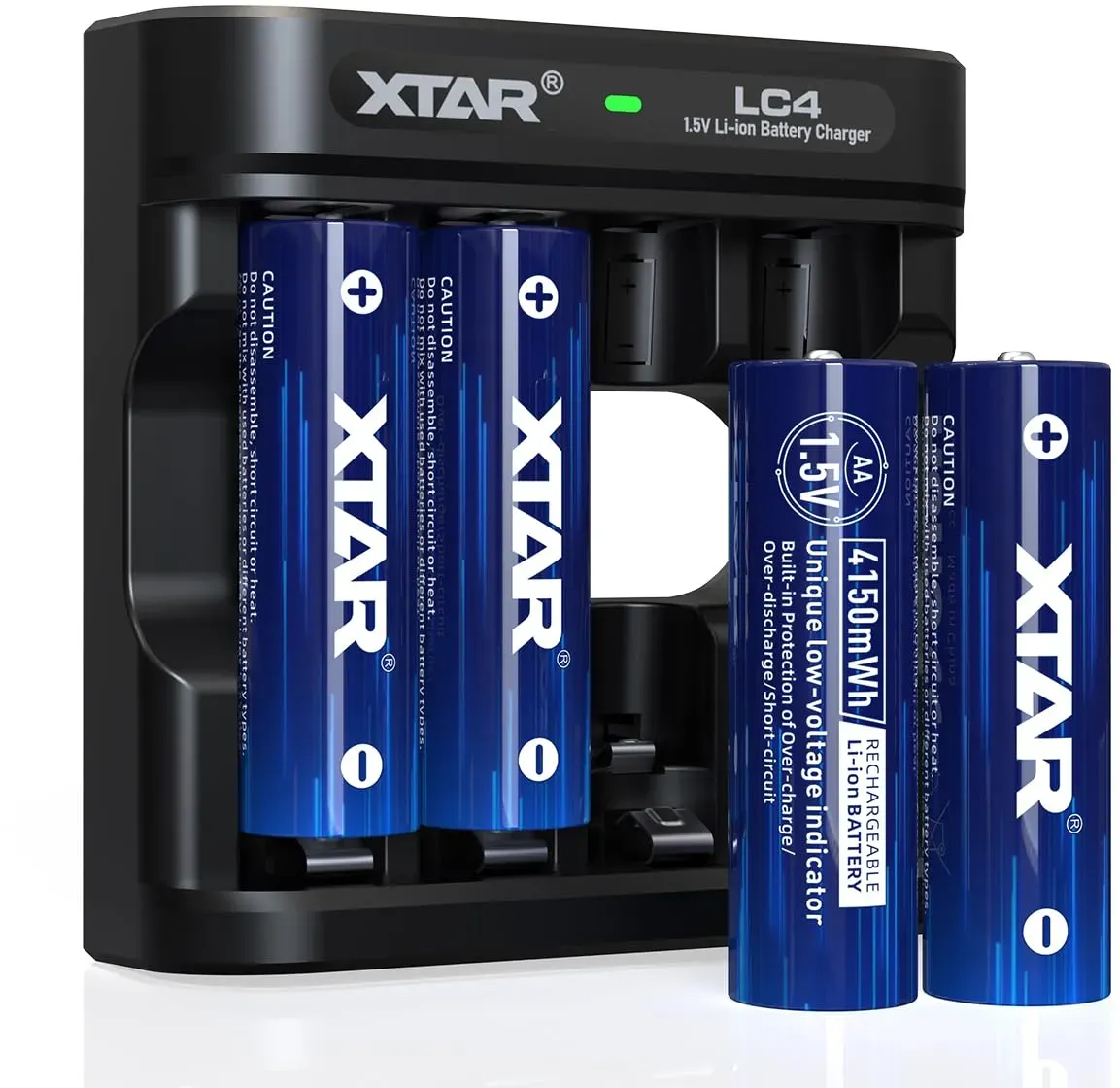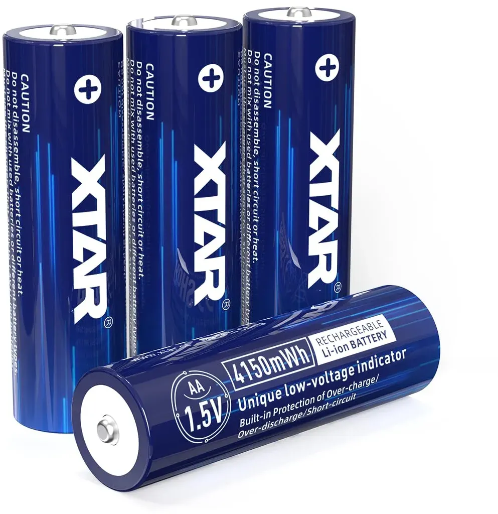 Auf Lager Versand durch AmazonXTAR 4150mWh 1,5V wiederaufladbare AA-Batterien: Konstante 1,5V Ausgabe & Niederspannungsanzeige (4 Stück 4150mWh Batterien)