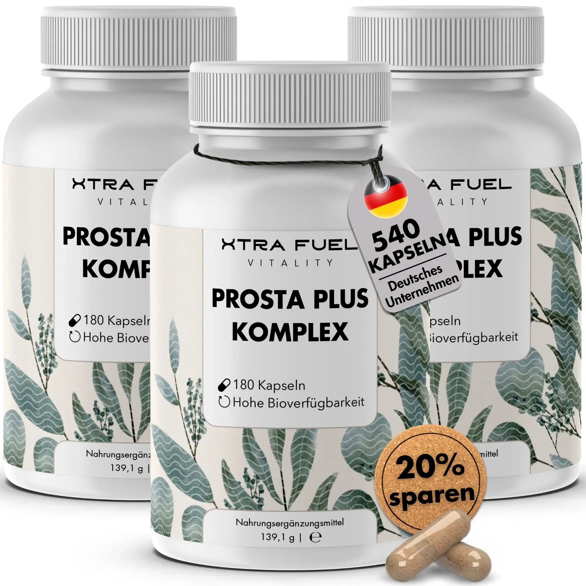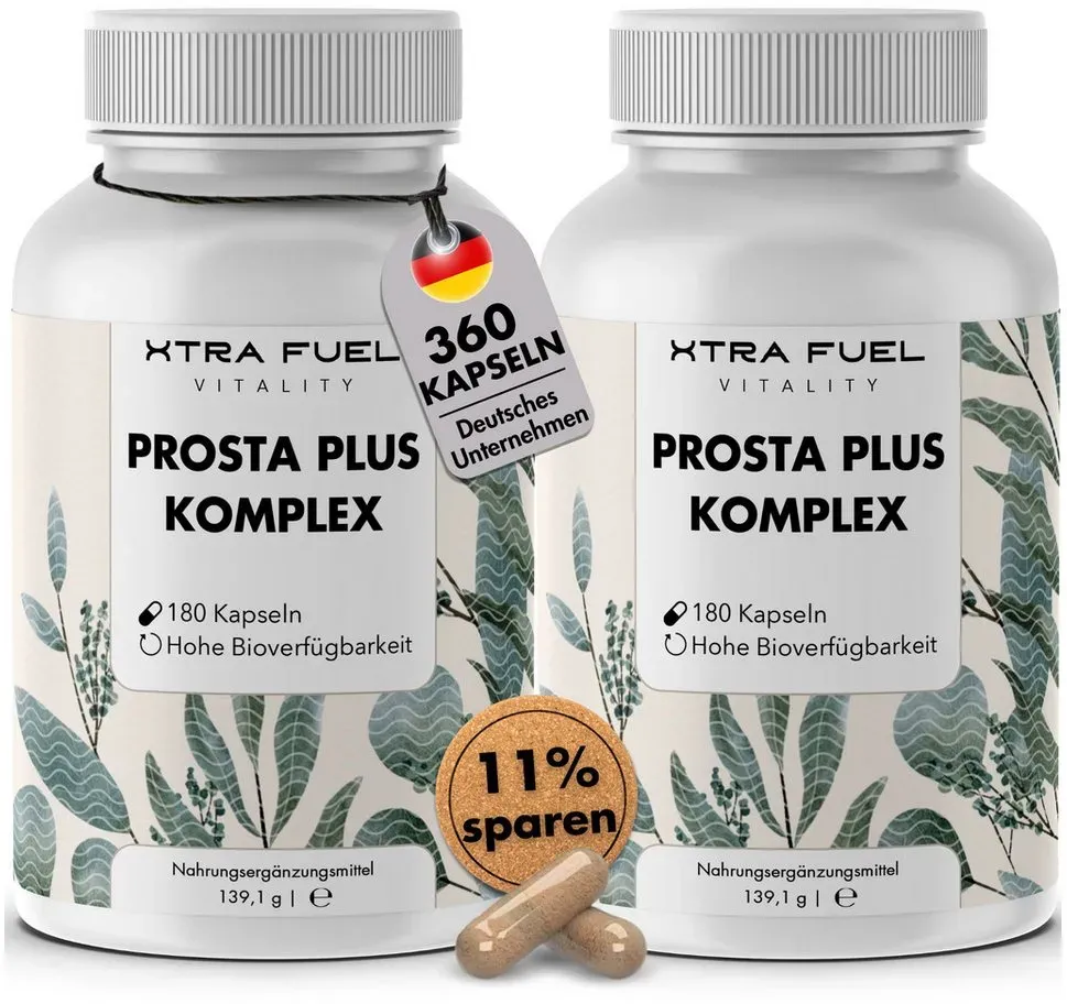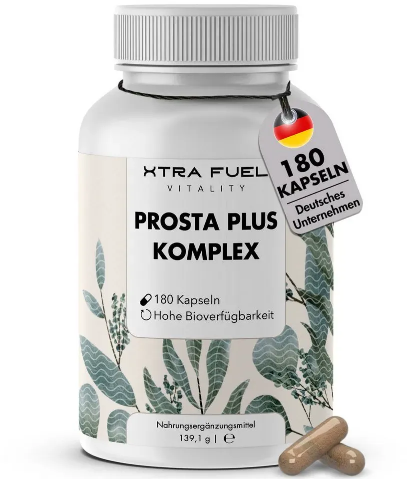 Xtra fuel prosta plus komplex META PreisvergleichMit dem Meta-Preisvergleich suchen Sie gleichzeitig bei den großen Preisvergleich Portalen!Jetzt live Suche nach xtra fuel prosta plus komplex starten! Xtra fuel prosta plus komplex KaufberatungXTRA FUEL Prosta Plus Komplex: Was Sie beachten solltenXTRA FUEL Prosta Plus Komplex ist ein Nahrungsergänzungsmittel zur Unterstützung der Prostata- und Männergesundheit. Es kombiniert pflanzliche Extrakte (Kürbiskern, Sägepalme, Brennnesselwurzel) mit Vitamin E, Zink und Selen[1][3][5]. Die Kapseln sind vegan, frei von Zusatzstoffen und Allergenen und werden in EU-zertifizierten Produktionsstätten hergestellt[2][5]. Wichtige Produktmerkmale