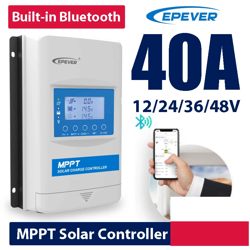 Auf Lager Versand durch AmazonEPEVER MPPT Laderegler 40A ,12V 24V 36V 48V Auto XTRA4415N Solarmodule Max PV 150V Common Negative Ground Solar Regler LED & LCD Display für Blei-Säure, Lithium, User Type (MPPT 40A,PV 150V)