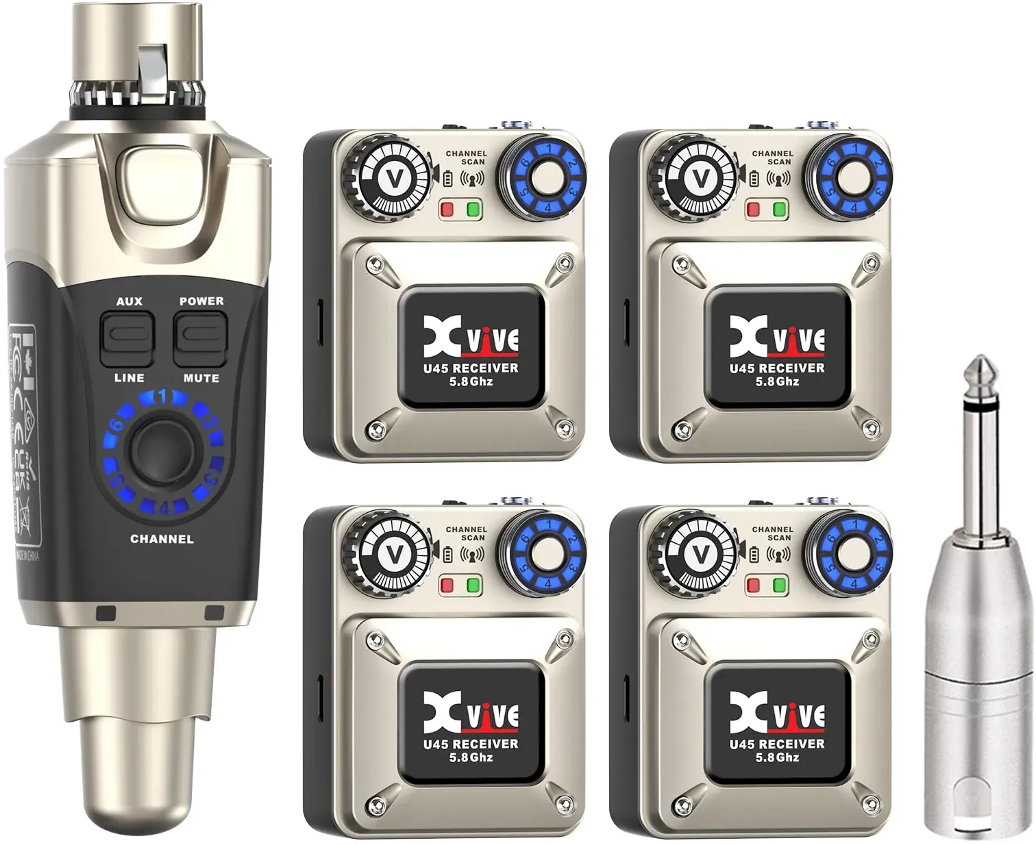 Auf Lager Versand durch AmazonXvive U45R4 Kabelloses In-Ear-Monitorsystem Set mit einem Sender und Vier Empfängern (5,8 GHz)