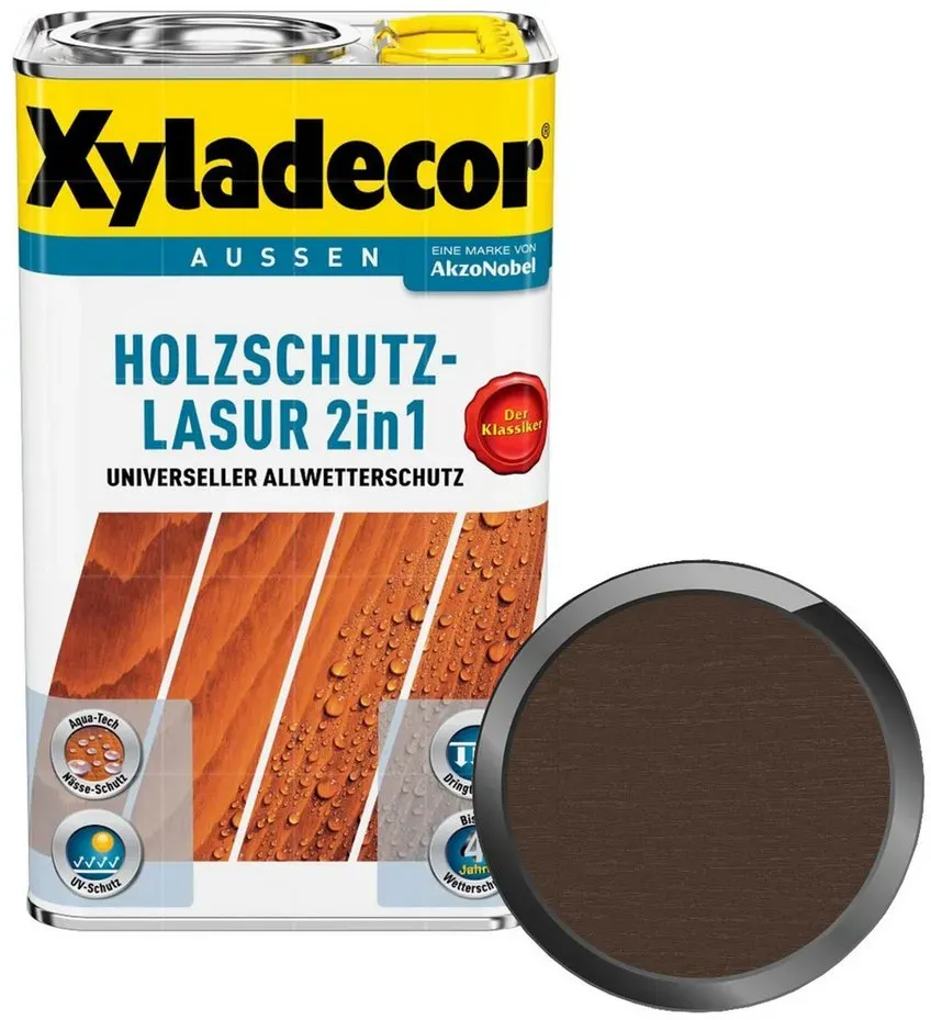 Auf Lager Versand durch AmazonXyladecor Holzschutz-Lasur 2in1, Universeller Allwetter-Schutz ? Der Klassiker, Nussbaum, 4 l