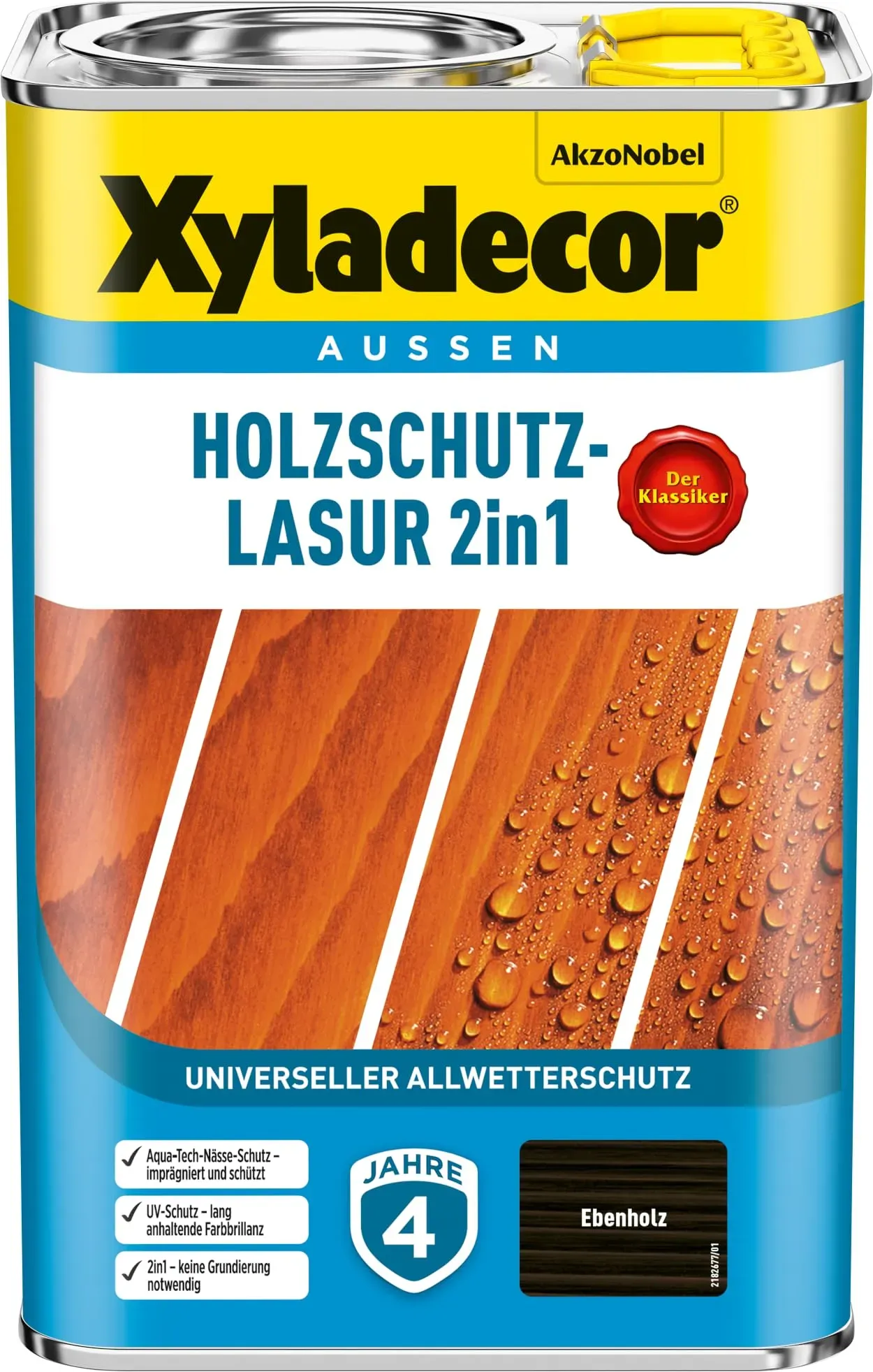 4 Händlerangebote bei billiger.de - Kategorie: Farben & Lacke - Xyladecor - Produkttyp: Holzlasur | Inhalt: 4 l | Lieferhinweis: Geliefert wird nur das genannte Produkt ohne Zubehör und Dekoration, sofern nicht explizit als Teil des Lieferumfangs genannt. | Achtung - Gefahrenhinweis H412: Schädlich für Wasserorganismen, mit langfristiger Wirkung. | Achtung - Sicherheitshinweis P101: Ist ärztlicher Rat erforderlich, Verpackung oder Kennzeichnungsetikett bereithalten. | Achtung - Sicherheitshinweis P102: Darf nicht in die Hände von Kindern gelangen. | Achtung - Sicherheitshinweis P273: Freisetzung in die Umwelt vermeiden - GTIN:4007591725165 Dieses 5L Gebinde in Nussbaum bietet eine große Menge zu einem attraktiven Preis pro Liter, ideal für sehr große Flächen. ![]() ![]() Xyladecor Holzschutzlasur Nussbaum 5 l