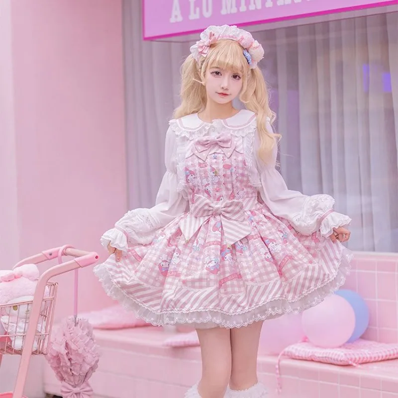 Shein - XLZufälliger Aufdruck,Strukturierte MusterNetz - bei de.shein.com - aus Yadore Produktdaten Dieses süße Spitzenkleid im Lolita-Stil mit Sanrio-Cartoon-Motiven ist eine verspielte Interpretation der Y2K-Weste. ![]() Kawaii Sanrio Cartoon Kuromi Cinnamoroll Melody Lolita Stil Mädchen Süßes Spitzenkleid Süße Schleife Abschlussball Party Prinzessin Kleid Y2k Weste