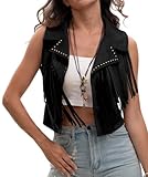 Zustand: Neu - Bekleidung Bekleidung für Damen - GORGLITTER - - - Damen Y2k Weste Ärmellos mit Leo Print Lässig/ Ärmellos/ V Ausschnitt/ Schleife/ Weste mit Leopard Muster Aus hochwertigem und elastischem Stoff, bietet perfekten Halt und Bewegungsfreiheit, ist bequem und langlebig zu tragen. Anlässe: perfekt für Alltag/ Freizeit/ Dating/ Urlaub/ Ausgehen Bitte prüfen Sie die Größenangaben des Produkts vor dem Kauf. Ein unbedeutender (± 2cm) manueller Messfehler in der Produktbeschreibung ist unvermeidbar, vielen Dank für Ihr Verständnis. - Verkäufer: SHENHE INTERNATIONAL im amazon.de Marketplace Eine Fransenweste im 70er-Jahre-Stil mit Quasten und Kunstwildleder, die einen authentischen Cowgirl-Western-Y2K-Look kreiert. ![]() ![]() Panegy Fransenweste für Damen 70er Jahre Denimjacke mit Besatz Quasten Strickjacke Ärmellos Cowgirl Westernjacke Kunstwildleder Y2K Weste Schwarz S