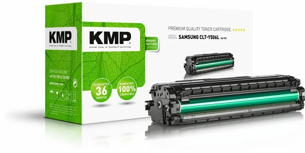 Lifestyle - - Die günstige Alternative: der KMP SA-T67 gelb Toner kompatibel zu SAMSUNG CLT-Y506L (SU515A)Damit keine Fragen offen bleiben, erhalten Sie hier alle Informationen zum KMP SA-T67 gelb Toner kompatibel zu SAMSUNG CLT-Y506L (SU515A), hierzu gehören u.a.:DruckleistungHersteller So überzeugend wie das Original!Rebuilt-Artikel wie der KMP SA-T67 gelb Toner kompatibel zu SAMSUNG CLT-Y506L (SU515A) sind qualitativ gleichwertig mit dem Original und dazu noch preisgünstig. Bei diesem Produkt wurde das leere Modul in einem aufwendigen Verfahren wiederaufbereitet. Alle Komponenten wurden geprüft und anschließend eine Neubefüllung durchgeführt. Sie erzielen somit zu einem erschwinglichen Preis ein optimales Druckergebnis. überdies wird durch sinnvolles Recycling ein wichtiger Beitrag zum Umweltschutz geleistet.Ein nach DIN 33870 geprüftes QualitätsproduktDer Artikel erfüllt die DIN 33870. Diese Norm befasst sich mit wiederverwerteten Druckerkomponenten und sichert die Einhaltung bedeutender Qualitätsstandards u.a. im Hinblick auf Ergiebigkeit, Tonerhaftung und Umweltverträglichkeit.Wie viele Seiten können gedruckt werden?Die Druckleistung bestimmt, wie viele Seiten Sie nach ISO/IEC 19798 mit dem Druckmittel drucken können. Sie beträgt im vorliegenden Fall ca. 3.500 Seiten. Sie können beim Drucken also in die Vollen gehen.Qualität mit Selbstverständlich entstehen Ihnen keine Nachteile durch die Verwendung der Komponente in Bezug auf die Hersteller des Gerätes. Sollte ... Der KMP Toner ist eine bekannte Marke für kompatible Produkte, die oft gute Qualität liefern. ![]() KMP Toner ersetzt Samsung »CLT-Y506L« gelb
