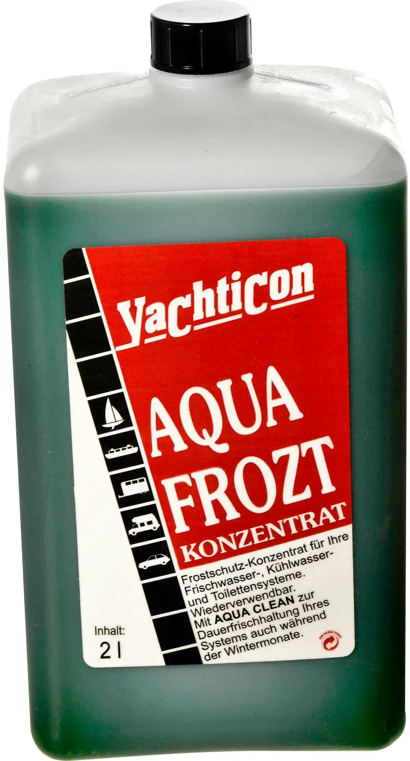 4 Händlerangebote bei billiger.de - Kategorie: Boot-Zubehör - Yachticon - Aqua Frozt 2 Liter von Yachticon. Aqua Frost zum überwintern Ihres Frischwasser-, Kühlwasser- oder Toilettensystems für Jacht Boot Karavan Wohnwagen Reisemobil zum überwintern Ihres Frischwasser-, Kühlwasser- oder Toilettensystems erspart das vollständige Entwässern Ihres Wassersystems. Wiederverwendbar 40% Frostschutz Konzentrat und 60% Wasser ergeben einen Frostschutz bis -21° C mit AQUA CLEAN zur Entkeimung und Dauerfrischhaltung Ihres Wassersystems auch während des Winters - GTIN:4031396000639 ![]() ![]() Yachticon Frostschutz Konzentrat Aqua Frozt 2 Liter