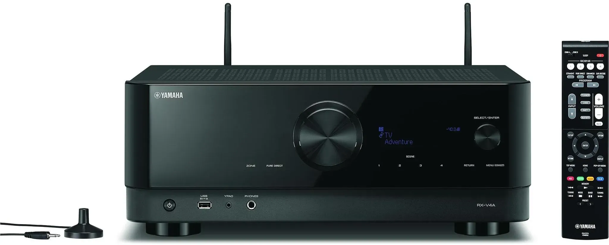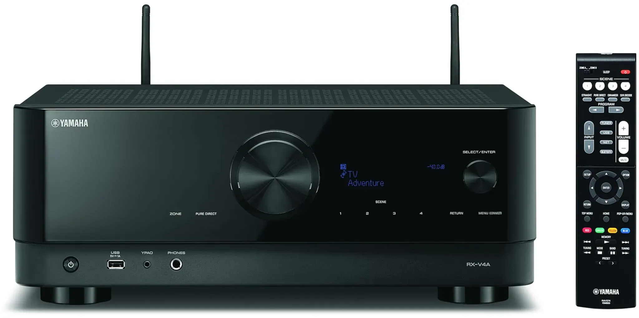 Auf Lager Versand durch AmazonYamaha Receiver RX-V4A ? Netzwerk-Receiver mit MusicCast Surround-Sound, Gaming spezifischen Funktionen und Voice Control Systemen ? Allround-Talent mit 5.2 Kanälen,schwarz