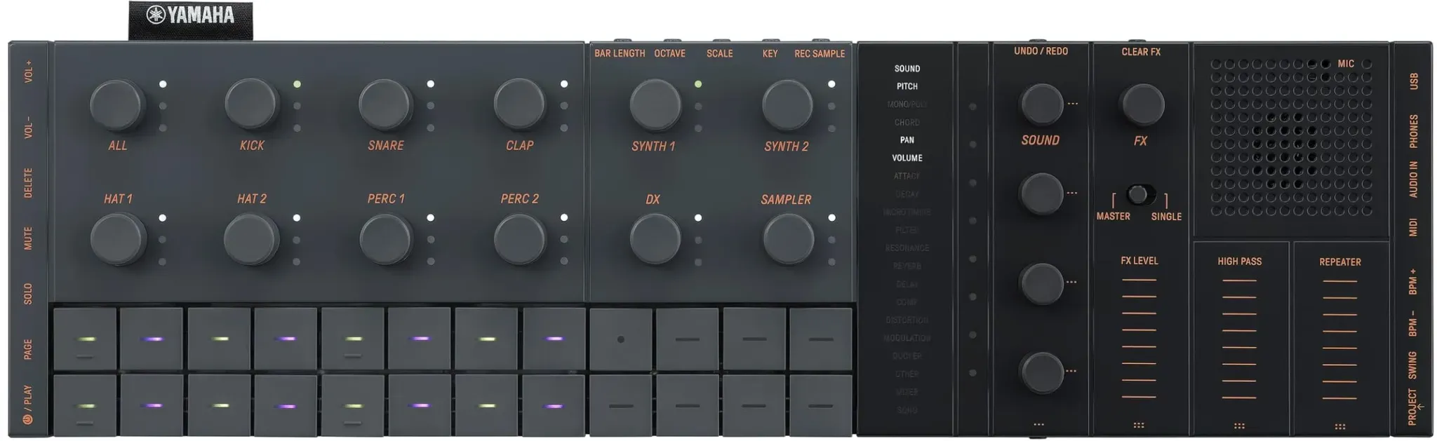 Yamaha - EAN: 4957812675406 - Sequenzer / Sampler / Synthesizer / Groovebox in einem 11 Spur Sequenzer AWM2 Synthese / 128-fache Polyphonie 4-OP FM Synthese / 8-fache Polyphonie 2032 Sounds aus verschiedenen Sound-Engines Stereo-Sampling mit 44 1 kHz/ 16-bit über 85 Effekte inkl. Delay Reverb & Master EQ integriertes MEMS Mikrofon integrierter 1W Lautsprecher WLAN & Bluetooth USB-C für Power MIDI & Audio Audioeingang Kopfhöreranschluss MIDI I/O über mitgeliefertes Kabel Akkuleistung ca. 3-4 Stunden SEQTRAK App für Win macOS iOS iPadOS & Android Yamaha | SEQTRAK Walkthrough Groovebox-Spaß im Bauhaus-Stil Mit dem SEQTRAK präsentiert Yamaha eine multifunktionale Groovebox mit Fokus auf schnellen Workflow und großem Soundangebot. Das kompakte Gerät vereint einen 11-Spur Sequenzer einen Stereo Sampler zwei verschiedene Synthese-Formen und die typischen Eigenschaften einer Groovebox. In Punkto Klangerzeugung schöpft der SEQTRAK aus dem Vollen: mit den Synthesen AWM2 und FM (4-OP FM) sind zwei absolute Klassiker aus Yamaha's Soundlabor an Board. AWM2 bietet maximal 128 Stimmen die komplexere FM Synthese muss mit 8-facher Polyphonie auskommen. Natürlich lassen sich alle Sounds weitreichend verändern filtern und mit Effekten belegen. Mit insgesamt 2032 Sounds ist genreübergreifend für so ziemlich jeden Musikgeschmack etwas dabei um neue Musik zu erschaffen.Der Sequenzer bietet 11 Spuren die sich als Drum Synth DX oder Sampler-Track konfigurieren lassen. Die Eingabe erfolgt in ... Dieses Angebot ist ein absolutes Schnäppchen für den Yamaha SEQTRAK ORANGE zu einem unschlagbaren Preis von 199 Euro. ![]() ![]() Yamaha SEQTRAK ORANGE