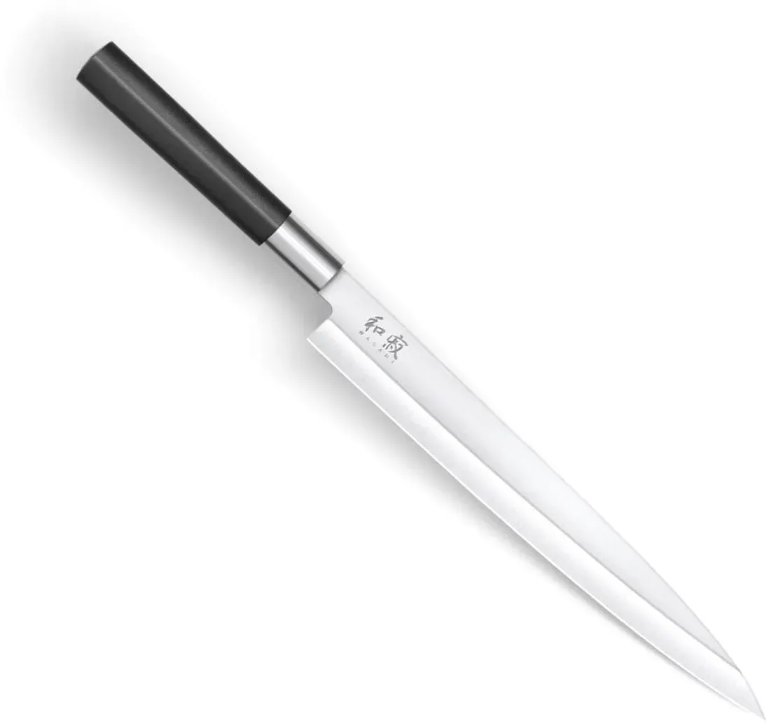 5 Händlerangebote bei billiger.de - Kategorie: Küchenmesser - KAI - Entdecken Sie das KAI Wasabi Black Yanagiba mit einer 24 cm langen Klinge aus hochwertigem 6A/1K6 Edelstahl. Die perfekte Kombination aus traditioneller japanischer Handwerkskunst und modernem Design, gewährleistet mit einer Rockwell-Härte von 58 ( 1) HRC dauerhafte Schärfe und Präzision. Ideal für anspruchsvolle Küchenarbeit. Das Messer besticht durch sein ergonomisch gestaltetes Design. Der schwarze Polypropylen-Griff bietet durch die Zugabe von Bambuspuder eine außergewöhnlich natürliche Haptik. Die polierte Klinge mit ihrer leichten Wölbung ermöglicht präzise und komfortable Schnittführungen. Ideal für die japanische Küche, zeichnet sich dieses Yanagiba durch den einseitigen Schliff aus und ist meisterhaft im Schneiden verschiedenster Fischarten, was es zum perfekten Werkzeug für Sushi und Sashimi macht. Pflegeleicht und langlebig: Der wasserbeständige Griff des Messers verhindert das Eindringen von Schmutz und erleichtert die Reinigung. Um die Schärfe und Qualität zu erhalten, empfehlen wir die Handwäsche und regelmäßiges Schärfen mit einem geeigneten Schleifstein. KAI steht seit über 11 n für feine japanische Handwerkskunst und vereint die Tradition der Samurai-Schmiedekunst mit modernen Techniken. Seit der Gründung 1908 in Seki, Japan, hat sich KAI zu einem globalen Unternehmen entwickelt, das Qualität und Präzision in jedem Messer verankert. - GTIN:4901601464566 Dieses Kai Seki Magoroku Redwood Yanagiba bietet eine hochwertige Klinge und einen edlen Pakkaholzgriff für eine anspruchsvolle Nutzung. ![]() ![]() KAI Seki Magoroku Redwood Yanagiba 24,0 cm Klingenlänge - 1K6 Edelstahl mit 57 ( 1) HRC - hochglanzpolierte Klinge - Pakkaholz Red Wood - Handgefertigt in Japan