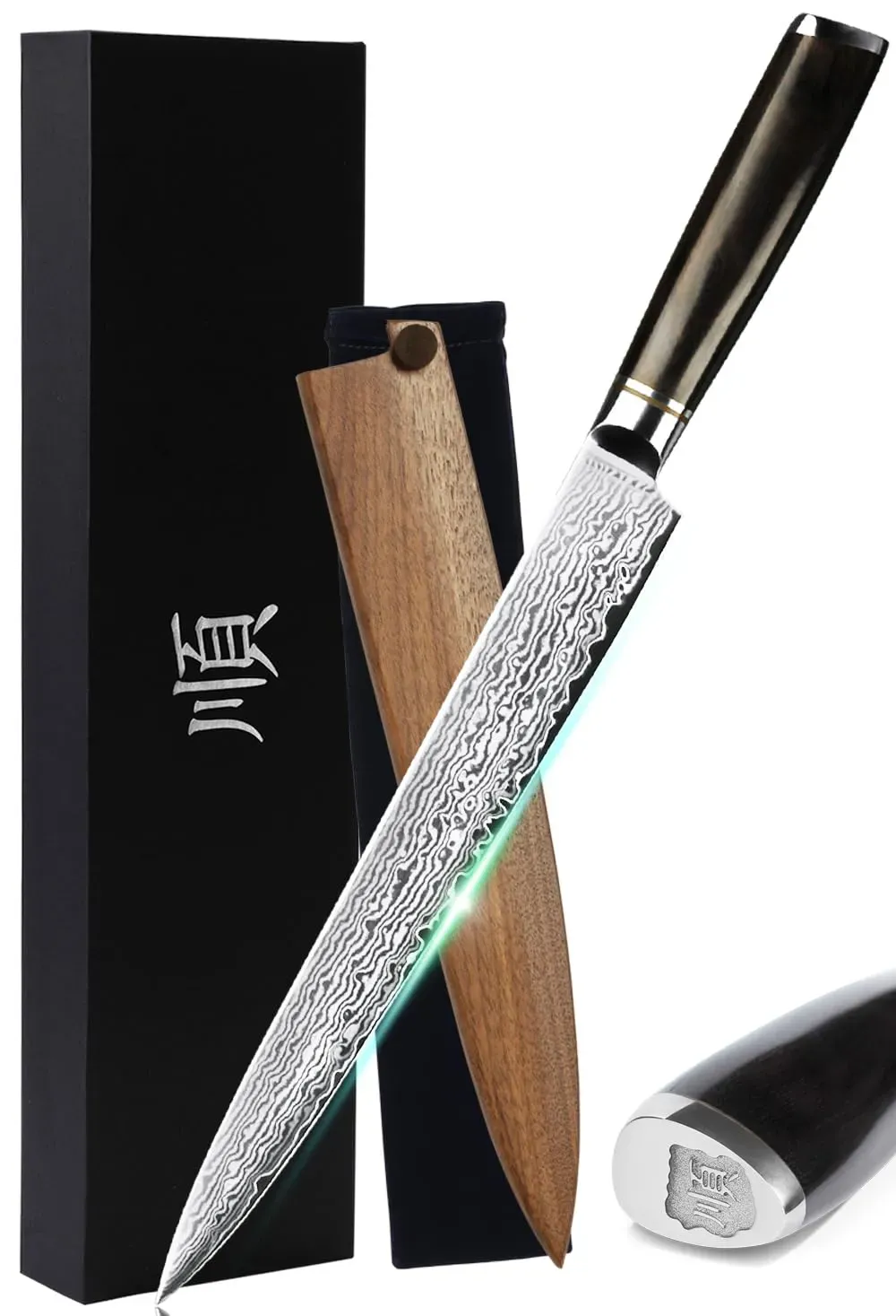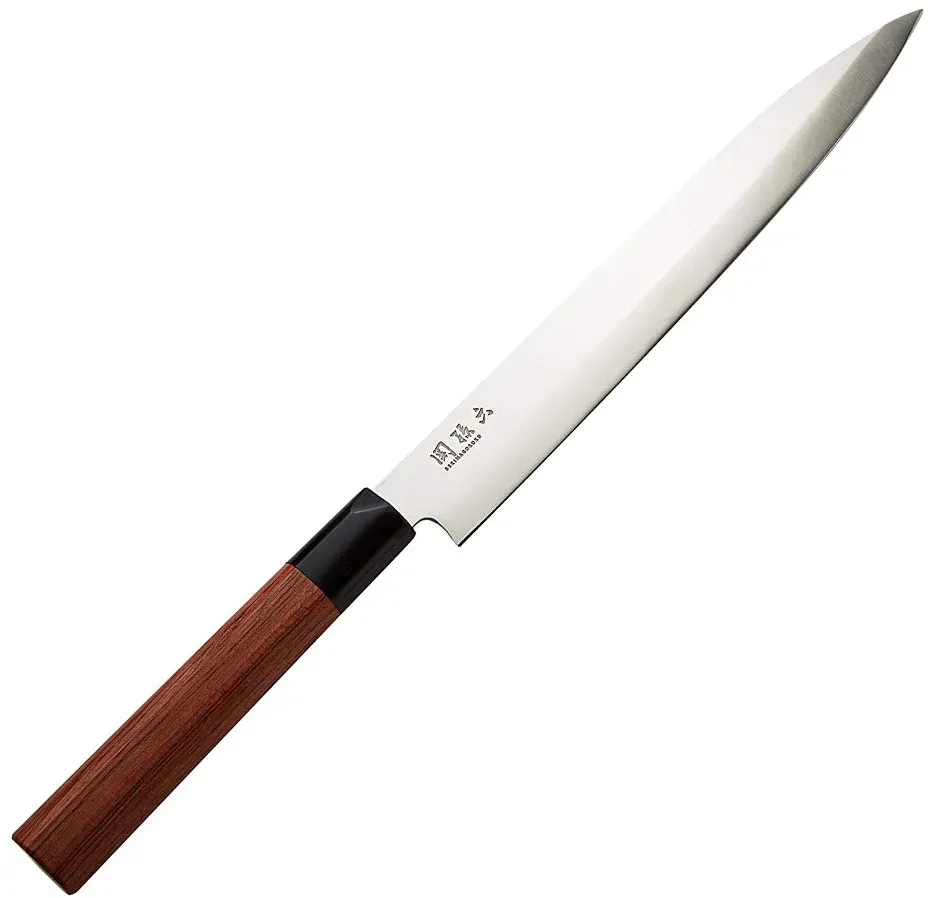 3 Händlerangebote bei billiger.de - Kategorie: Küchenmesser - KAI - Das KAI Seki Magoroku Redwood Yanagiba, mit einer 24 cm langen einseitig geschliffenen Klinge aus hochwertigem Carbon 1K6 Edelstahl und einer Rockwell-Härte von 57 ( 1) HRC, vereint japanische Handwerkskunst und innovative Technologie. Die einzigartige Kombination aus traditioneller Form und modernen Materialien zeichnet dieses Küchenutensil aus. Die Serie kombiniert ästhetische Eleganz mit herausragender Funktionalität. Mit ihrem traditionell japanischen, hochglanzpolierten Klingenschliff bietet sie eine außergewöhnliche Schärfe. Der ergonomisch geformte Pakkaholzgriff sorgt für eine komfortable und sichere Handhabung, was sie ideal für präzise und anspruchsvolle Aufgaben in der Küche macht. Das Yanagiba-Messer ist die Quintessenz japanischer Schmiedekunst, ideal für die Zubereitung von Sashimi und Sushi. Seine lange, dünne Klinge ermöglicht es, Fisch mit präzisen, geraden Schnitten zu filetieren und zu portionieren, wodurch es glatte und zarte Scheiben ohne Faserriss rt. Um die Qualität und Schärfe des Messers zu erhalten, wird die Reinigung per Hand und die Lagerung in einem Messerblock oder einer Schutzhülle empfohlen. Regelmäßiges Schärfen mit einem geeigneten Wetzstein sichert die langanhaltende Performance und Schnitthaltigkeit. KAI repräsentiert als traditionsreicher Hersteller aus Japan die Quintessenz der feinen Schmiedekunst. Bekannt für die Verbindung von jahrhundertealter Samurai-Tradition mit ... Ein Damaststahl-Yanagiba, das eine hervorragende Schärfe und eine ansprechende Optik zu einem mittleren Preis bietet. ![]() ![]() YOUSUNLONG Yanagiba-Messer 245 mm - Japanisches Damaststahl-Sushi- und Sashimi-Messer - Scheide aus Walnussholz und Griff aus Ebenholz - Präzises Schneiden von Fisch, Fleisch und Geflügel