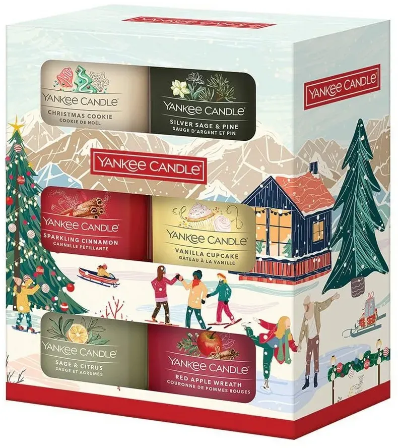 Verfügbarkeit: 1-3 Werktage - 56.02 / 1 Kilogramm - Kategorie: Kerzen - Yankee Candle - GTIN:5038581016481 - YANKEE CANDLE Große Duftkerze CHRISTMAS MAGIC: Der klassische Weihnachtsduft - Harz und Kiefer verfeinert mit Eukalyptus und einem Hauch von Birke. Yankee Candle - das Original. Genießen Sie mit den beliebten Housewarmer Duftkerzen von Yankee Candle Ihr besonderes Dufterlebnis. Paraffinwachs mit hochwertigen Duftölen Docht aus 100% Baumwolle Lange Brenndauer bis zu ca. 100-150 Stunden Glas im unverwechselbaren Retro-Design mit Deckel Ideal als Geschenk für alle Anlässe Durchmesser: ca. 9,8 cm Höhe: mit Deckel ca. 17,5 cm Wachsmenge: 623 Gramm - 34,90 Euro bei 1a-neuware.de - gefunden von billiger.de Dieses Geschenkset mit 6 Mini-Votivkerzen ist ideal, um verschiedene Weihnachtsduftnoten kennenzulernen oder als Geschenk. ![]() ![]() Yankee Candle Christmas Scented Candles Gift Set | 6 Scented Mini Filled Votive Signature Candles | Soy Blend Wax Mix | Perfect Christmas Gifts for Women