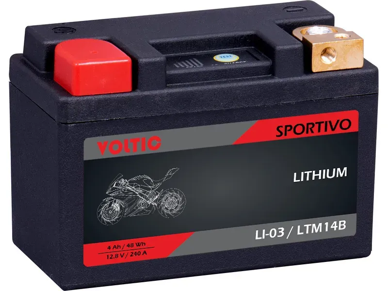 Kategorie: Motorradbatterien - JMT - GTIN:4060536465427 - Die Batterie passt ausschließlich für: Honda VT 500 E Baujahr 1983-1985. Lieferung erfolgt inklusive Batterieschrauben, aufgeladen und startklar! Baugleich mit: YB12A-A JMB12A-A GM12AZ-4A1 GB12A-A FB12A-A EB12A-A CB12A-A 6S3P 12N12A-4A-1 512011012 51211 Spannung: 12 Volt, Kapazität: 12 Ah, Energieleistung: 1443 Wh, Startstrom: 145 A, Länge: 134 mm, Breite: 80 mm, Höhe: 161 mm, Gewicht: 4,39 kg, Anschluss: von vorne, Pluspol: links, Minuspol: rechts Rüttelfest, sehr lange Lebensdauer, hohe Kaltstartleistung und minimale Selbstentladung Wartungsfreie Gel Motorrad-Batterie von JMT in bewährter und zuverlässiger Markenqualität. Die Batterie ist bereits mit einem Gel-Elektrolyt gefüllt und absolut auslaufsicher - 87,90 Euro bei Amazon Marketplace Automotive - gefunden von billiger.de Die Voltima Sportivo LI-03 Lithium-Motorradbatterie ist eine leichte und leistungsstarke Alternative. ![]() ![]() Voltima Sportivo LI-03 YB12A-A Lithium 4Ah Motorradbatterie LTM14B