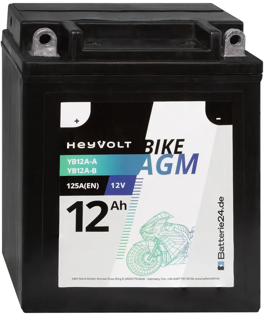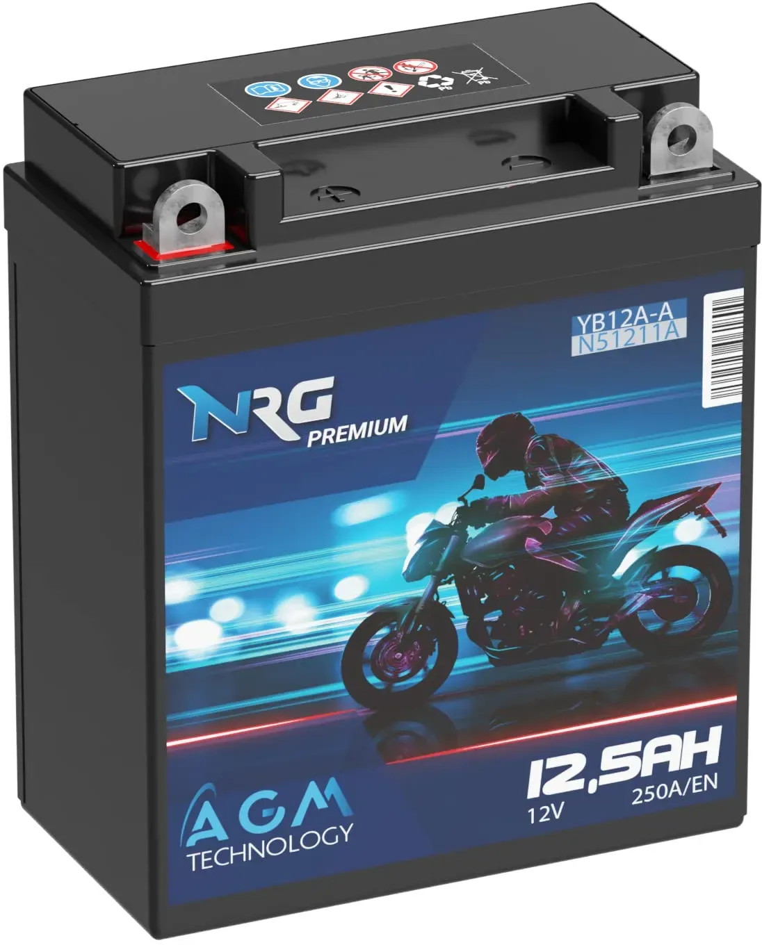 Kategorie: Motorradbatterien - Batterie24.de - GTIN:4262385363033 - Zuverlässige Stromversorgung für dein Motorrad Diese 12V Motorradbatterie mit 12Ah Kapazität liefert die nötige Power, um dein Motorrad jederzeit startklar zu halten perfekt für den täglichen Einsatz oder sportliche Fahrten. AGM-Technologie für maximale Leistung Die wartungsfreie AGM Motorradbatterie überzeugt durch eine hohe Zyklenfestigkeit, stabile Energieversorgung und eine besonders lange Lebensdauer. Auslaufsicher & sicher lagerfähig Dank AGM-Technologie bleibt die Batterie auslaufsicher, unabhängig von der Einbaulage. Ideal für Fahrer, die Wert auf Sicherheit und eine unkomplizierte Handhabung legen. Perfekt für anspruchsvolle Fahrten Entwickelt für leistungsstarke Motorräder, bietet diese Starterbatterie eine hohe Startkraft, selbst bei extremen Bedingungen oder längerer Lagerung. Einfache Installation & Kompatibilität Mit Erstausrüsterqualität und passendem Batteriecode lässt sich die Batterie mühelos einbauen oder bei Bedarf schnell abklemmen ein perfekter Ersatz für herkömmliche Blei-Säure-Batterien. - 38,90 Euro bei Amazon Marketplace Automotive - gefunden von billiger.de Die NRG PREMIUM AGM-Batterie ist eine leistungsstarke und wartungsfreie Option mit doppelter Lebensdauer. ![]() ![]() NRG PREMIUM YB12A-A AGM Motorradbatterie 12V 12,5Ah 250A/EN 51211 YB12A-B CB12A-A AGM Batterie 12V doppelte Lebensdauer vorgeladen auslaufsicher wartungsfrei ersetzt 10Ah