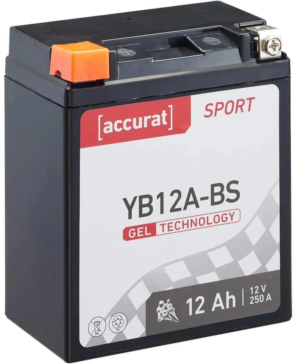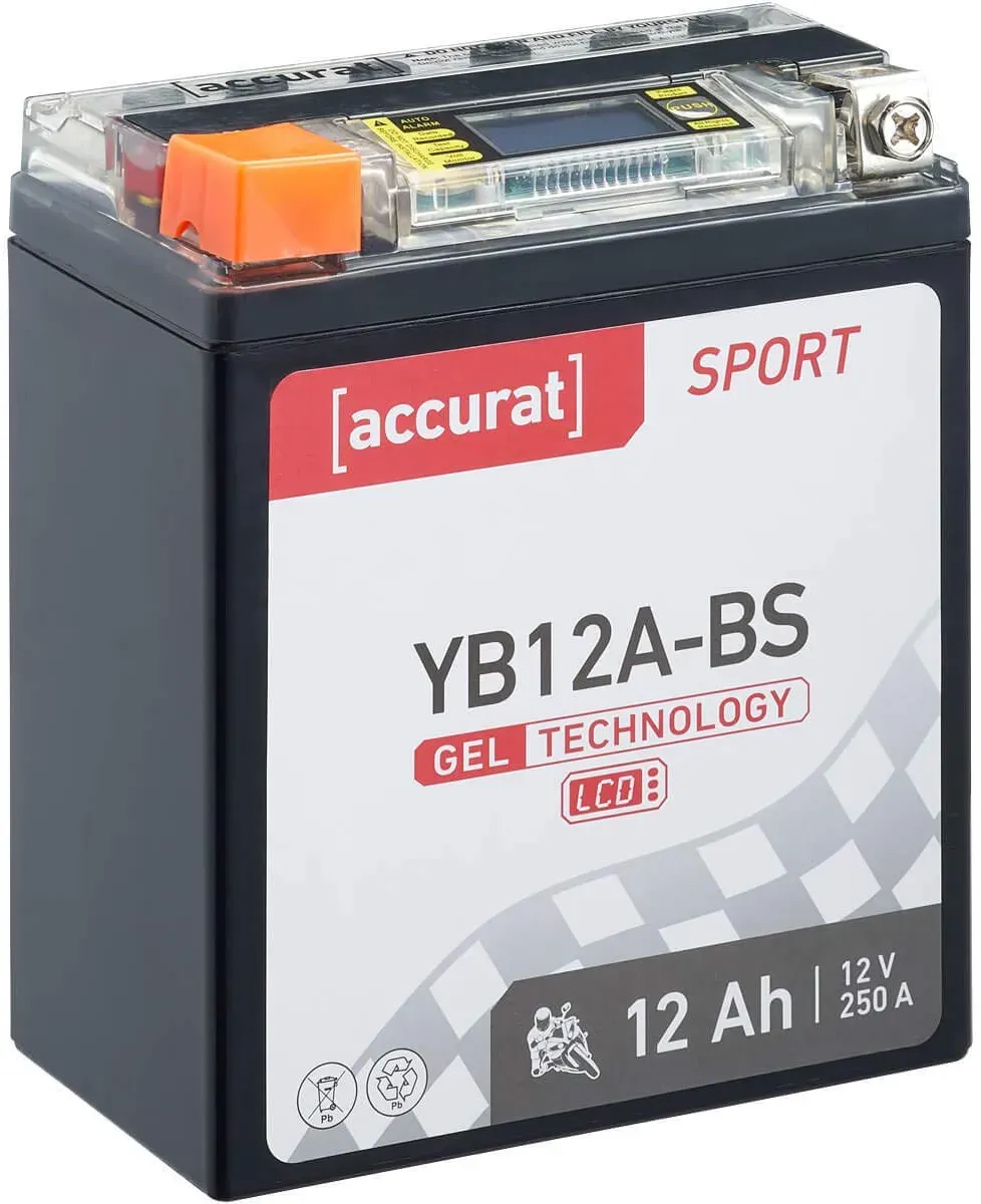 Kategorie: Motorradbatterien - Electronicx - GTIN:4059568196942 - Leistungsstark & zuverlässig 12V GEL Motorradbatterie mit 12Ah und 150A Kaltstartstrom, ideal für schnellen Motorstart auch bei Kälte, sofort einsatzbereit dank vorgefülltem und geladenem Zustand. Langlebig & wartungsfrei GEL-Technologie sorgt für bis zu 30 % mehr Startleistung, kein Wasser nachfüllen nötig, sehr geringe Selbstentladung. Robust & sicher vibrationsfest, vollständig auslaufsicher, perfekt für anspruchsvolle Einsätze auf Straße und Gelände, ideal bei hoher elektrischer Belastung (z. B. ABS). Kompakte Maße 134 78 156 mm, Gewicht 3,8 kg, Polanordnung: Pluspol rechts (Schaltung 0), ersetzt u. a. Typen YB12AL-A, YB12AL-A2, GEL12-12AL-A, 6Y3PS, M4F32. Vielseitig einsetzbar passend für Motorrad, Roller, Quad, ATV, Schneemobil, Rasen- und Gartengeräte, optimal für Fahrer mit hohen Leistungsansprüchen und elektronischen Zusatzausstattungen - 42,99 Euro bei Amazon Marketplace Automotive - gefunden von billiger.de Diese Accurat Motorradbatterie ist zyklenfest, wartungsfrei und in Erstausrüsterqualität erhältlich. ![]() ![]() Accurat Motorradbatterie YB12A-BS - 12V, 12Ah, 250A, zyklenfest, wartungsfrei, Gel - Starterbatterie, Batterie in Erstausrüsterqualität für Rasentraktor, Roller, Motorrad, Quad