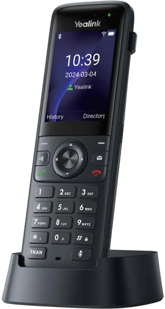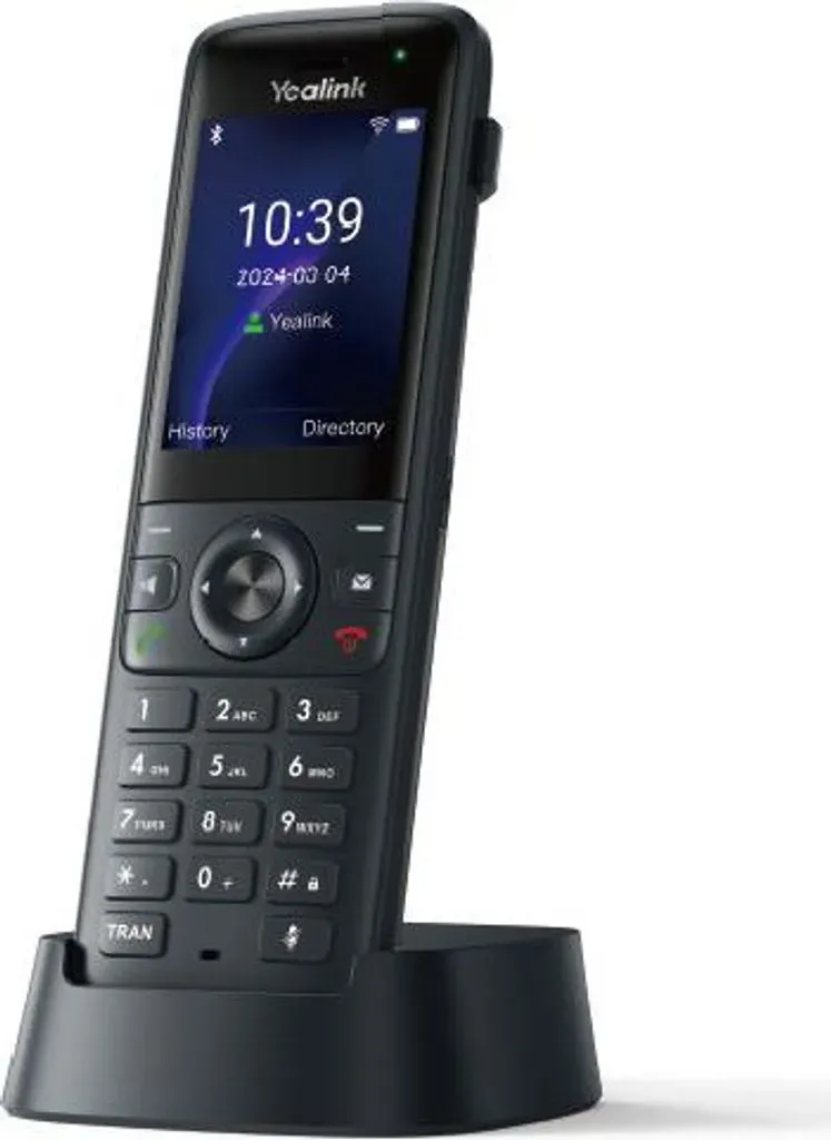 Yealink - EAN: 6938818320048 - Das Yealink AX83H ist die perfekte Lösung für Unternehmen, die ein leistungsstarkes und mobiles Wi-Fi-IP-Telefon benötigen. Dank Wi-Fi 6-Unterstützung und nahtlosem Roaming genießen Sie überall eine stabile Verbindung ideal für Büros, Lager oder Hotels. Die exzellente HD-Sprachqualität mit Smart Noise Filtering sorgt für kristallklare Gespräche ohne störende Hintergrundgeräusche. Mit bis zu 9 Stunden Sprechzeit und 200 Stunden Standby bleibt das AX83H den ganzen Tag einsatzbereit. Das benutzerfreundliche 6,1 cm (2,4 Zoll) Farbdisplay, die Unterstützung für bis zu vier SIP-Konten und die Konnektivität mit Bluetooth- und kabelgebundenen Headsets machen es zu einem vielseitigen Begleiter im Arbeitsalltag. Highlights - Hervorragende Audioqualität: Dank Yealinks Optima HD Voice und Smart Noise Filtering Technology bietet der AX83H exzellente Klangqualität und ermöglicht klare Gespräche ohne störende Hintergrundgeräusche - Integriertes Wi-Fi 6 und Bluetooth 5.0: Ausgestattet mit Dual-Band 2,4G/5G Wi-Fi 6 und Bluetooth 5. - Nahtloses Roaming: Unterstützung von IEEE 802.11 k/v/r Roaming ermöglicht unterbrechungsfreie Verbindungen, ideal für große Arbeitsbereiche wie Lagerhäuser oder Büros - Leistungsstarker Akku: Der wiederaufladbare Akku bietet bis zu 9 Stunden Sprechzeit und 200 Stunden Standby-Zeit - Mehrere SIP-Konten: Unterstützung für bis zu vier SIP-Konten ermöglicht flexible Verwaltung mehrerer Leitungen und Rufnummern - Benutzerfreundliches ... ![]() Yealink AX83H, VoIP-Telefon
