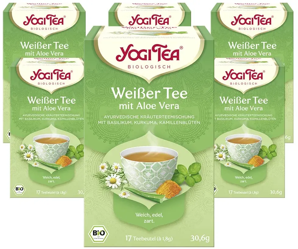 Verfügbarkeit: Auf Lager - Kategorie: Tee - Yogi Tea - GTIN:4020989290168 - Kräutertee: Bei dieser erfrischenden Mischung treffen grüner Tee und Kombucha die Weisheit asiatischer Traditionen auf Pfefferminze , Zitronengras und Holunderblüten Der Tee für alle, die der Zeit vertrauen Frischer Geschmack: Leicht, munter, gelassen YOGI TEA' steht für geschmackliche Vielfalt und Gesundheit Nimm dir eine Auszeit und genieße diese inspirierende, frische Teemischung, um sich zu entspannen oder sich neuen Herausforderungen zu stellen Grüner Tee Sencha: Sencha, der von uns verwendete Grüntee, wird auch als 'Königssorte des Grüntees' bezeichnet Er vereint die positivsten Eigenschaften der grünen Teepflanze und hat einen frischen, markanten Geschmack Der Tee ist bio-zertifiziert, frei von Aromen und Zusatzstoffen Die Teebeutel sind 100% kompostierbar, das Papier ist FSC-zertifiziert und der Transport der Rohstoffe per Container erfolgt 100% CO2-neutral Zudem unterstützt YOGI TEA soziale Projekte weltweit Yogi Tea: Mit unseren Tees, einer yogischen Weisheit an jedem Teebeutel und einer Yoga-übung auf jeder Packung wollen wir Euch eine Inspiration sein und damit einen Beitrag zu einer friedlichen, gesunden Welt voller Achtsamkeit und Glück leisten - 19,95 Euro bei Amazon Marketplace Kitchen - gefunden von billiger.de Das 6er-Pack Yogi Tea Weißer Tee mit Aloe Vera bietet eine sanfte und erfrischende Teemischung in größerer Menge. ![]() ![]() Yogi Tea - Weißer Tee mit Aloe Vera, Ayurvedischer Bio Gewürz- und Kräutertee, Mischung aus Basilikum, Kurkuma und Kamillenblüten, Yogi Tee 6er Pack, 6x17 Beutel (102 Teebeutel insgesamt)