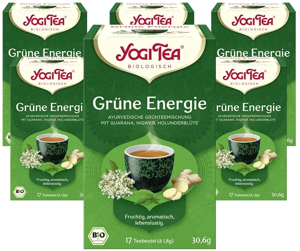1 Händlerangebote bei billiger.de - Kategorie: Tee - Yogi Tea - Die klassischen Gewürze von Yogi Tea als fertig gekochter Barista Chai. Es ist ein Kultgetränk für Yogis und Yoginis. Er kann auf viele verschiedene Arten zubereitet und serviert werden. - GTIN:4012824601048 Das 6er-Pack Yogi Tea Grüne Energie ist ideal für alle, die einen belebenden Tee mit Guarana und Holunderblüten schätzen. ![]() ![]() Yogi Tea - Grüne Energie, Ayurvedischer Bio Gewürz- und Kräutertee, Mischung aus Grünem Tee, Guarana, Ingwer und Holunderblüten, Yogi Tee 6er Pack, 6x17 Beutel (102 Teebeutel insgesamt)