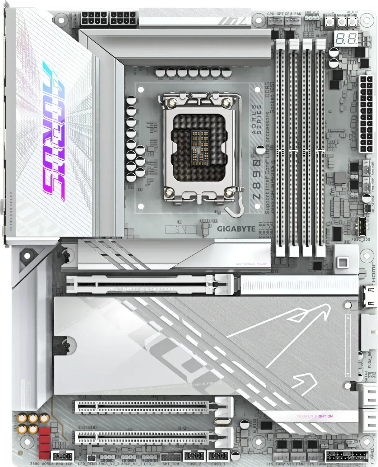 Zustand: Neu - Mainboards - Gigabyte - Z890 AORUS PRO ICE - EAN: 4719331864712 - Digital 16+1+2+1 Phasen 90A SPS VRM mit Tantalum Polymer Kondensator Verstärkter PCIe UD X Steckplatz PCIe 5.0 mit PCIe EZ-Latch Plus Design PCIe M.2 Design (Bis zu 25110) mit M.2 EZ-Latch Plus & Thermal Guard Vollständig abdeckende Kühlkörper für MOSFET mit Heatpipe/M.2 EZ-Latch Klick Design Intel 2x2 Wi-Fi 7 BE200 mit WIFI EZ-Plug Design 5GbE LAN, THUNDERBOLT 4 Typ-C, USB 3.2 Gen2x2 Typ-C AORUS Exklusives DDR Kühlkit: DDR Wind Blade - bei Amazon.de ![]() Gigabyte Z890 AORUS PRO ICE, Mainboard
